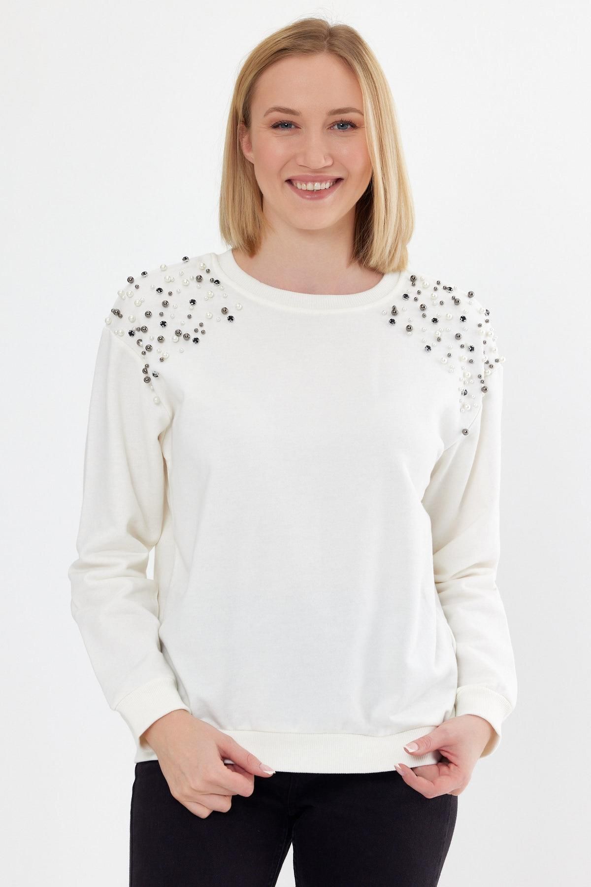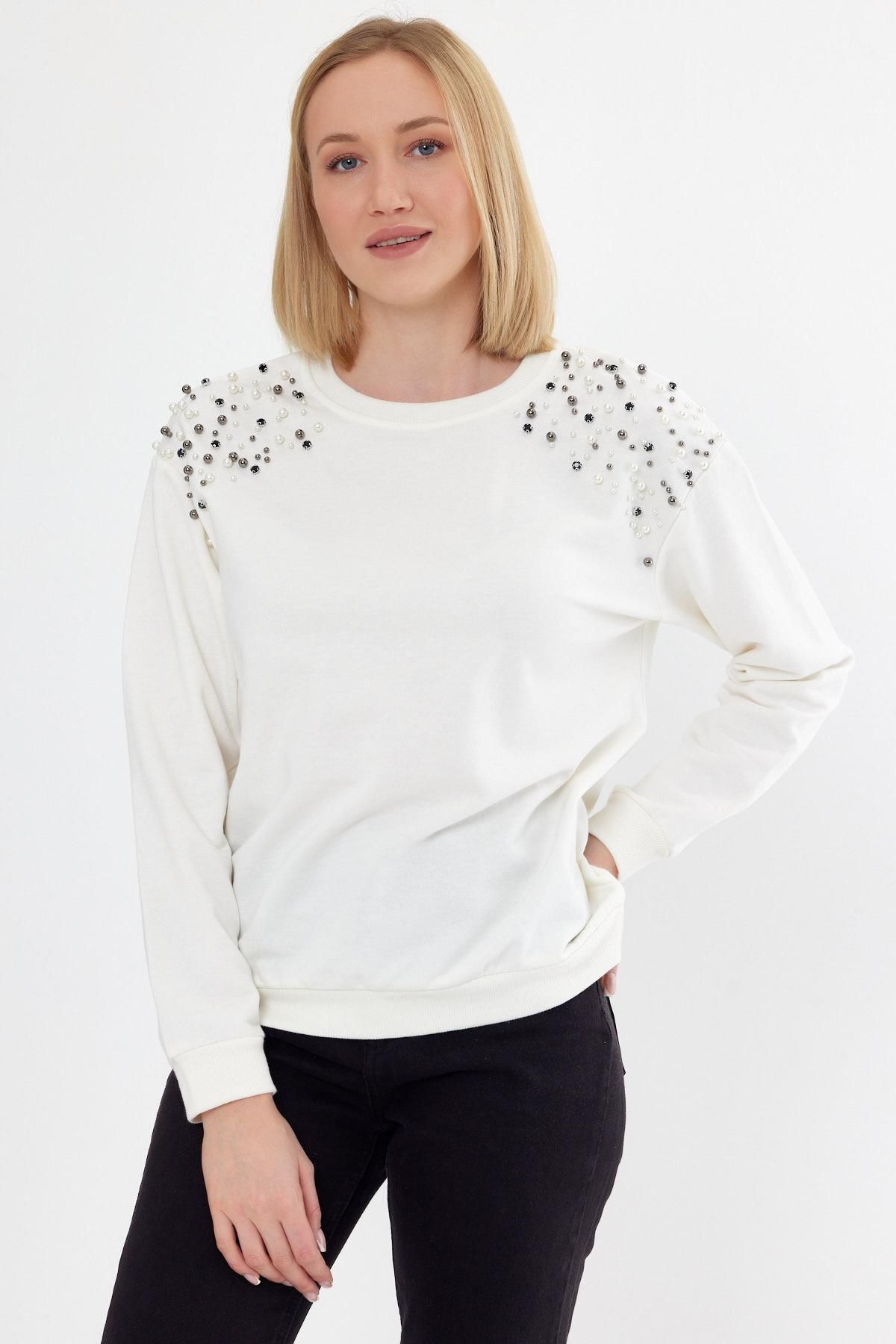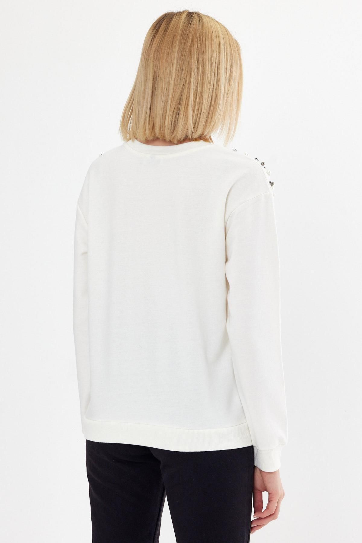 Kadın Rahat Kalıp Omuzları İnci Düğme Detaylı Sweatshirt