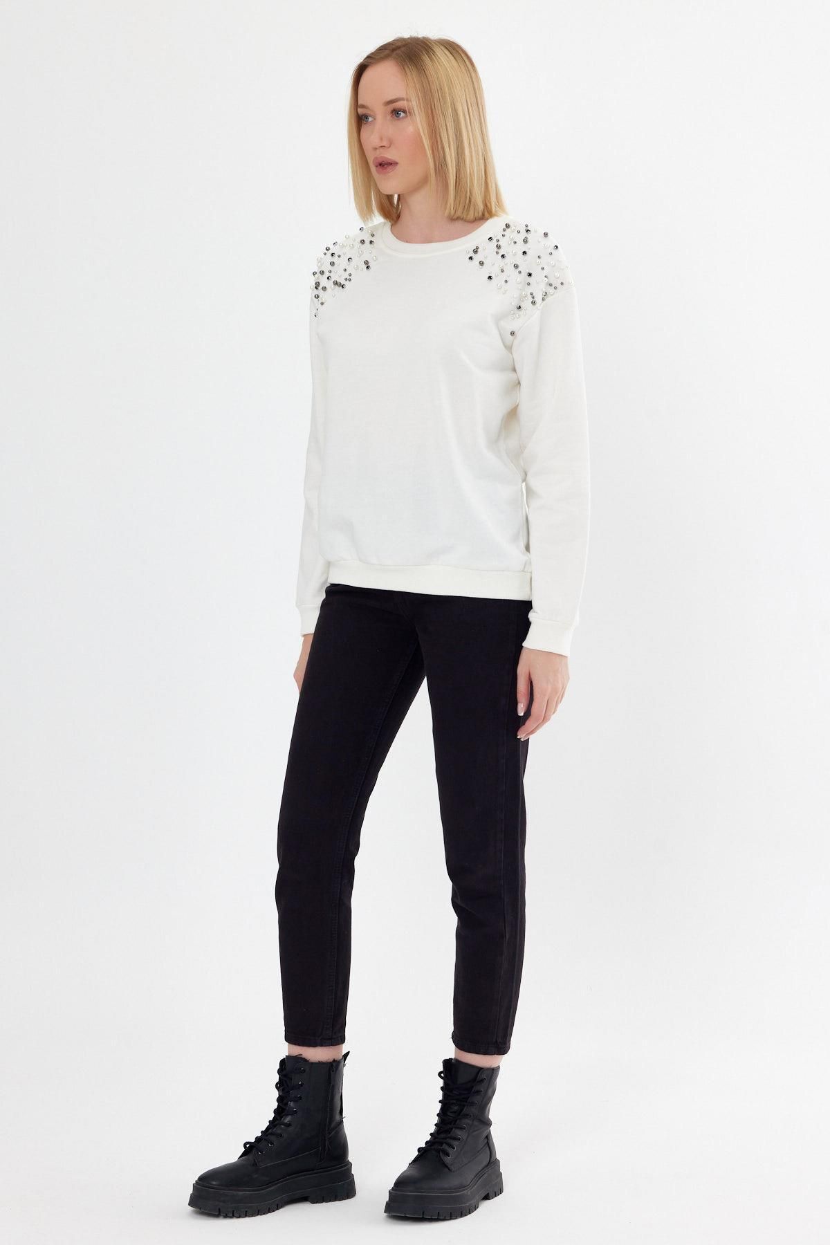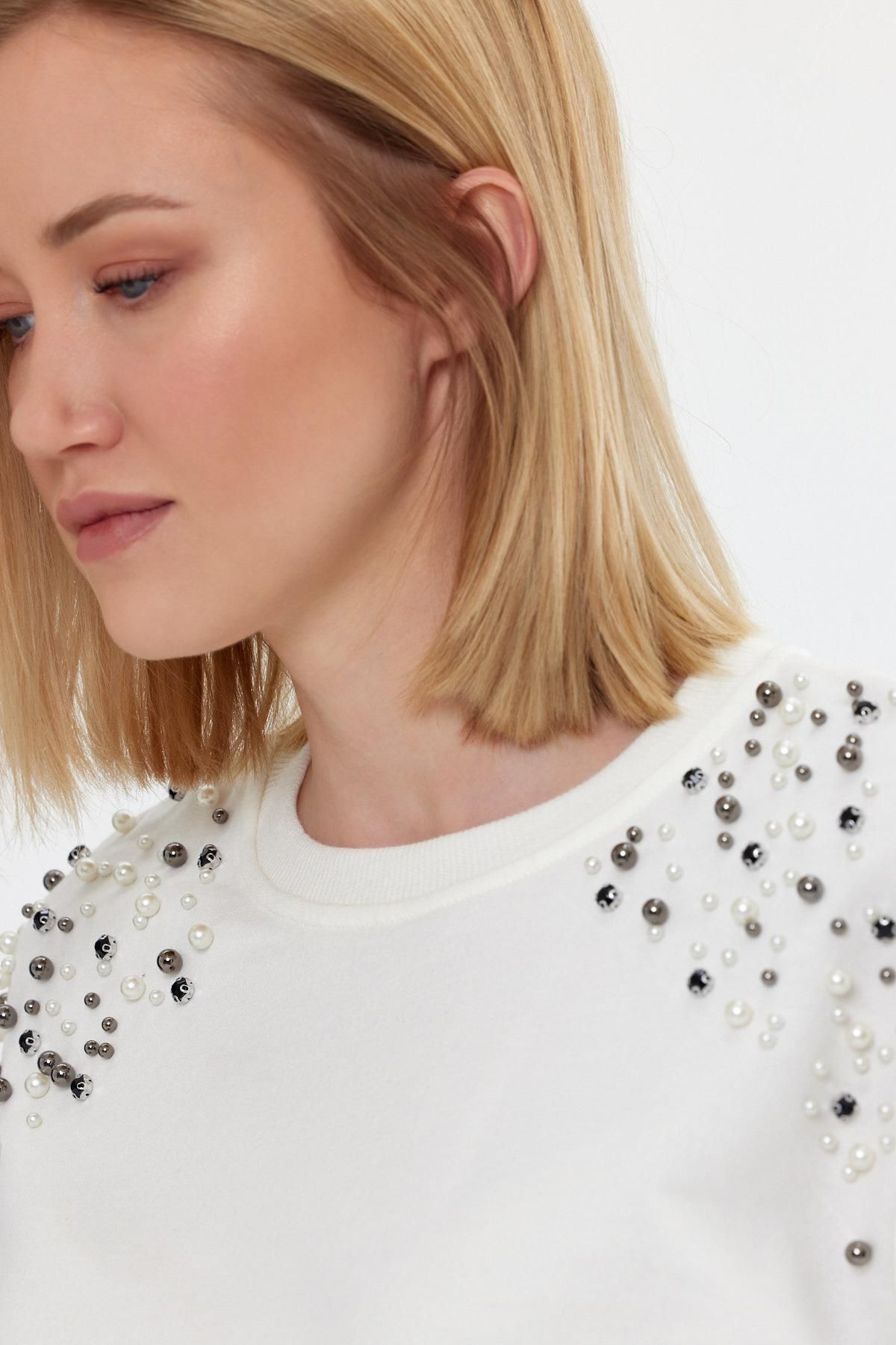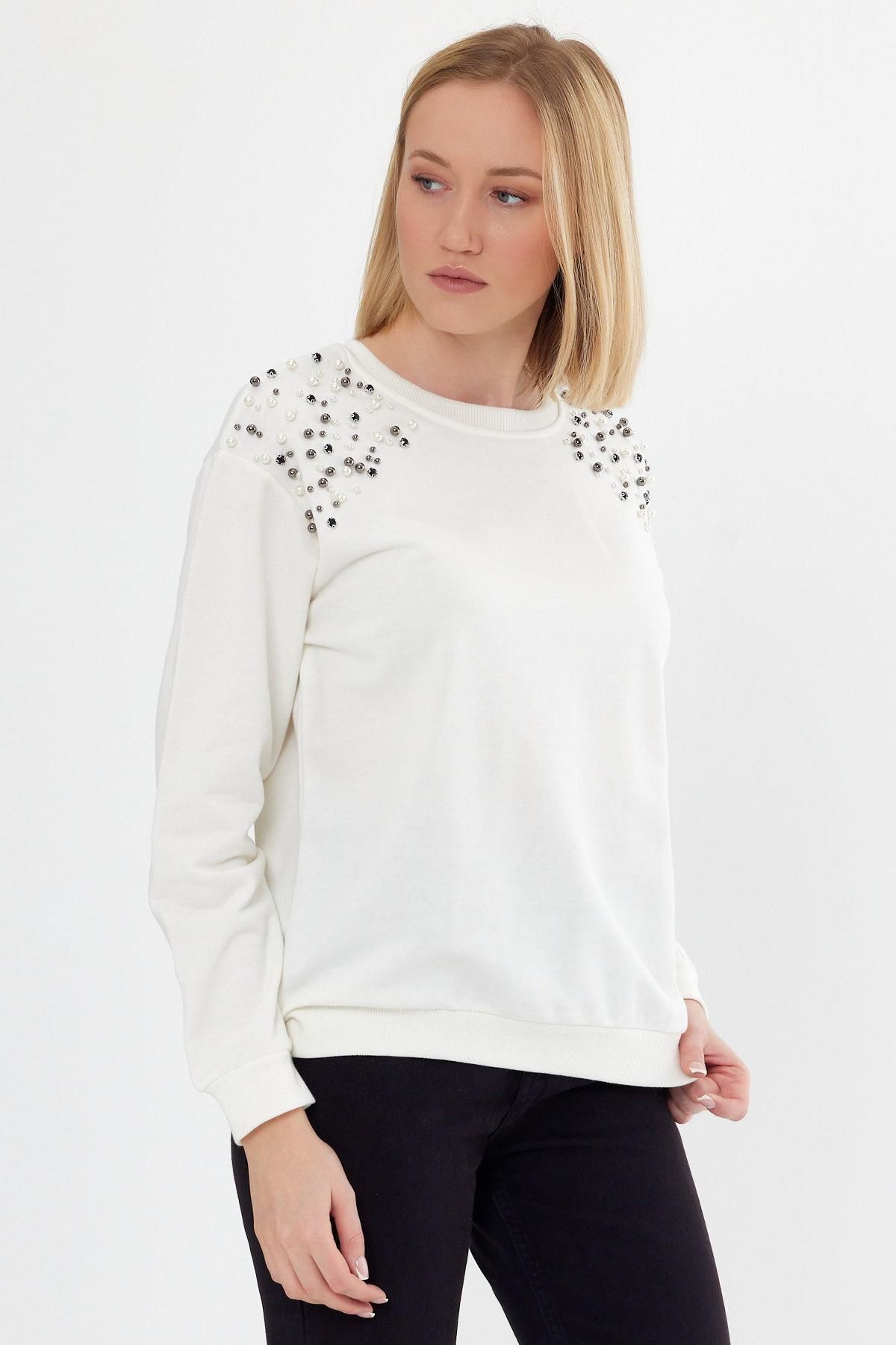 Kadın Rahat Kalıp Omuzları İnci Düğme Detaylı Sweatshirt