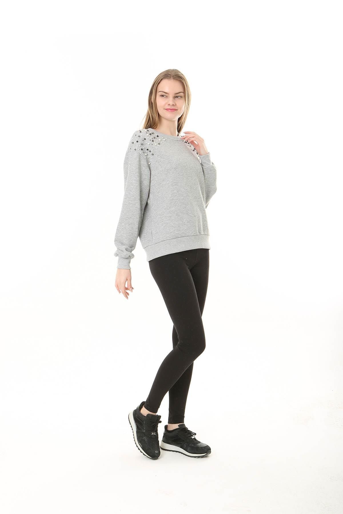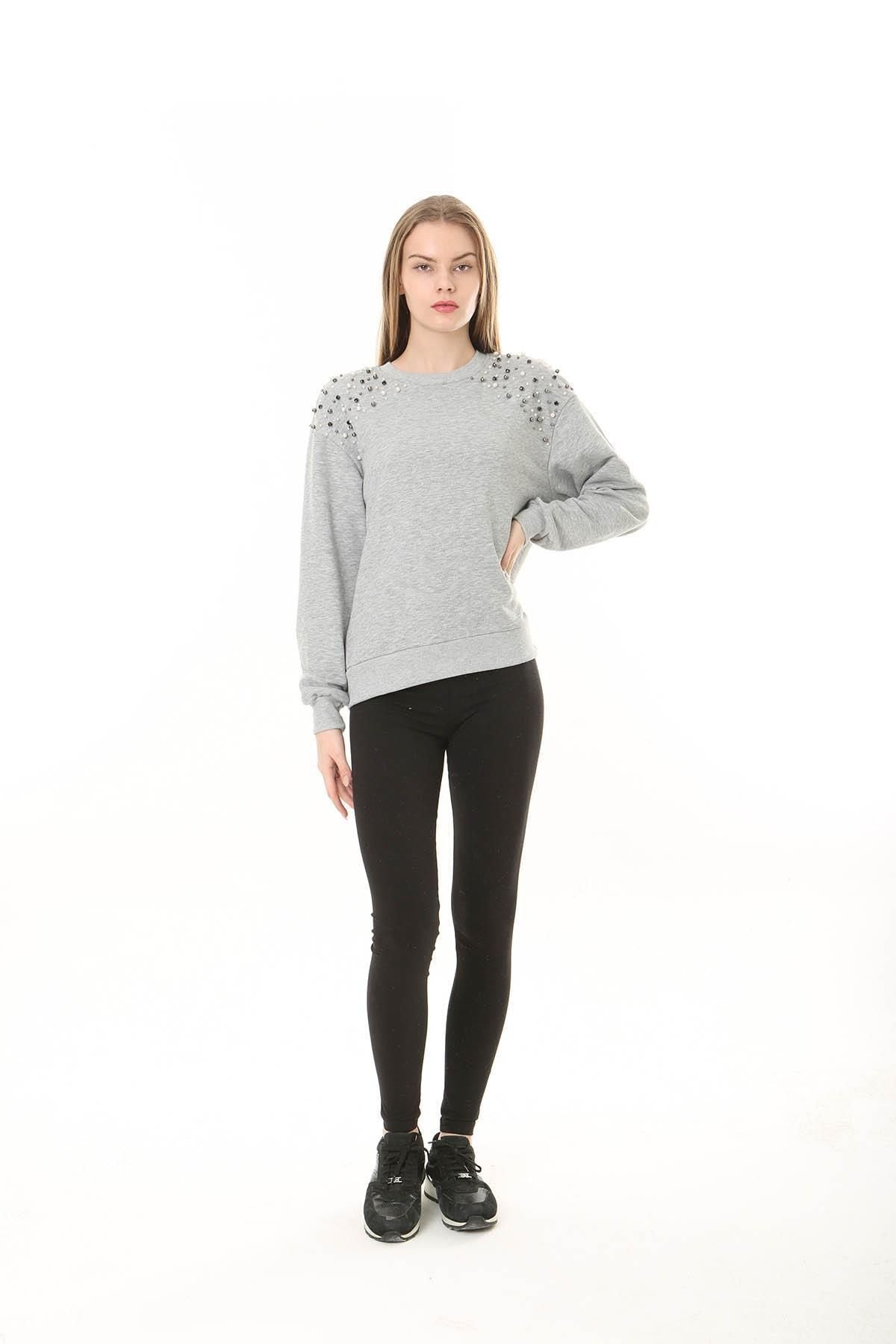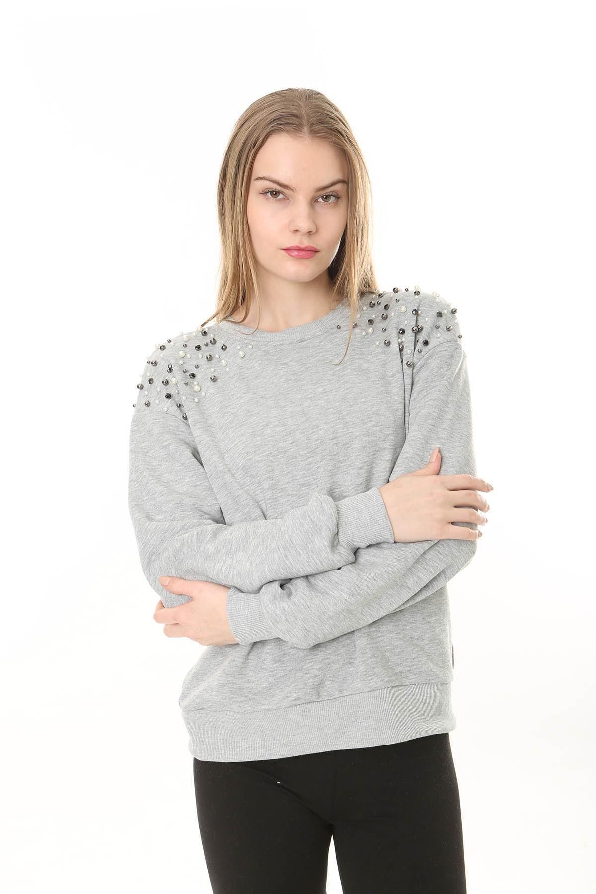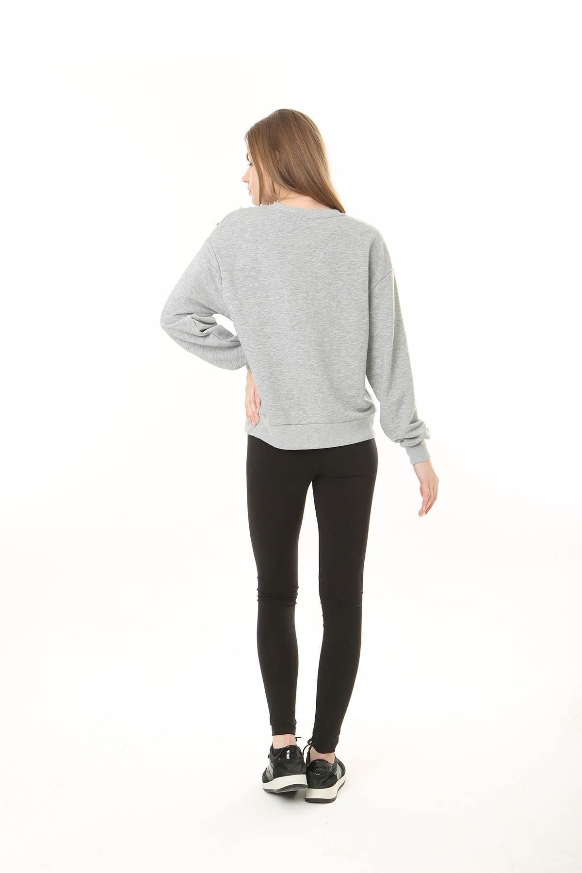 Kadın Rahat Kalıp Omuzları İnci Düğme Detaylı Sweatshirt