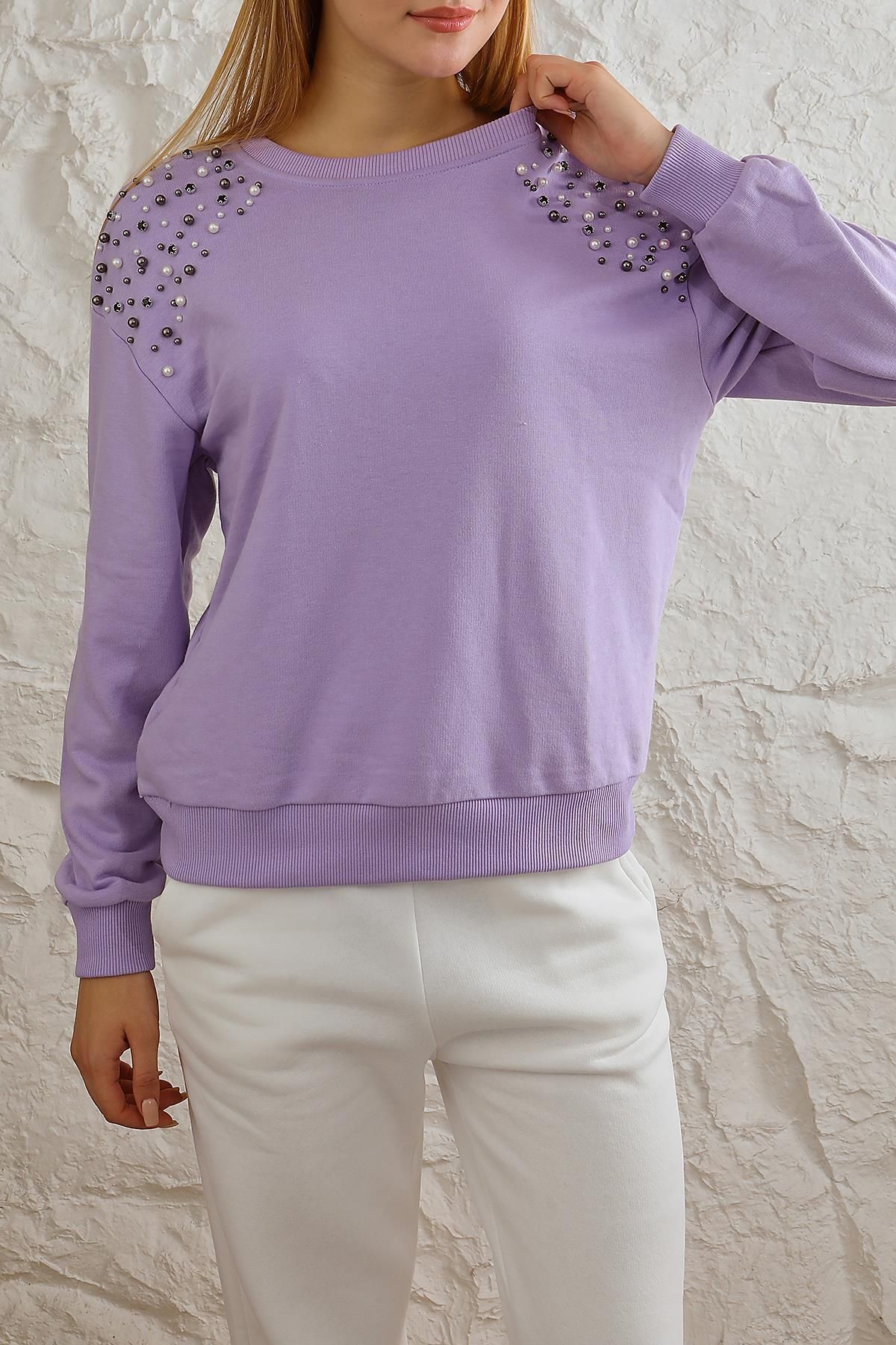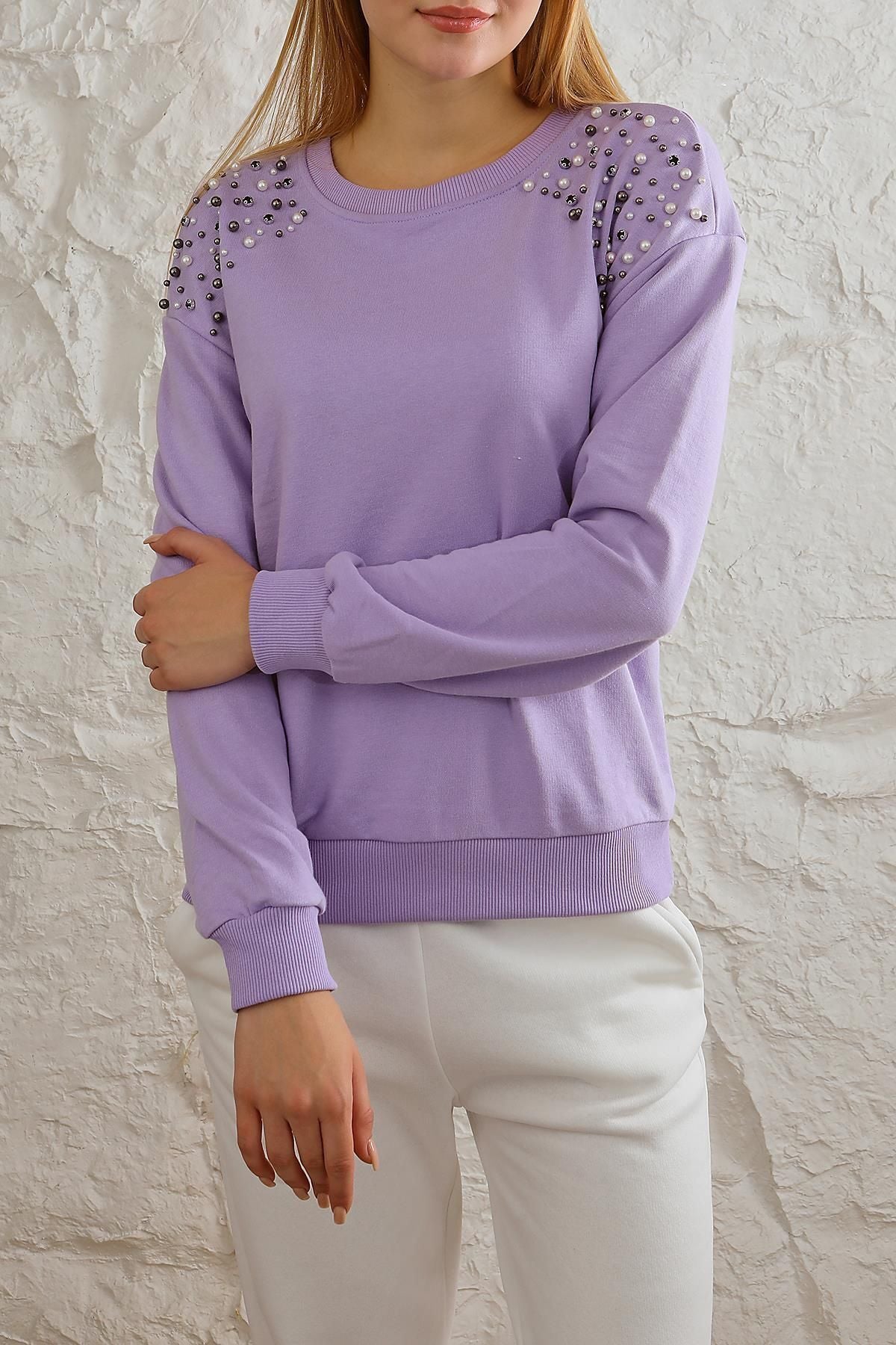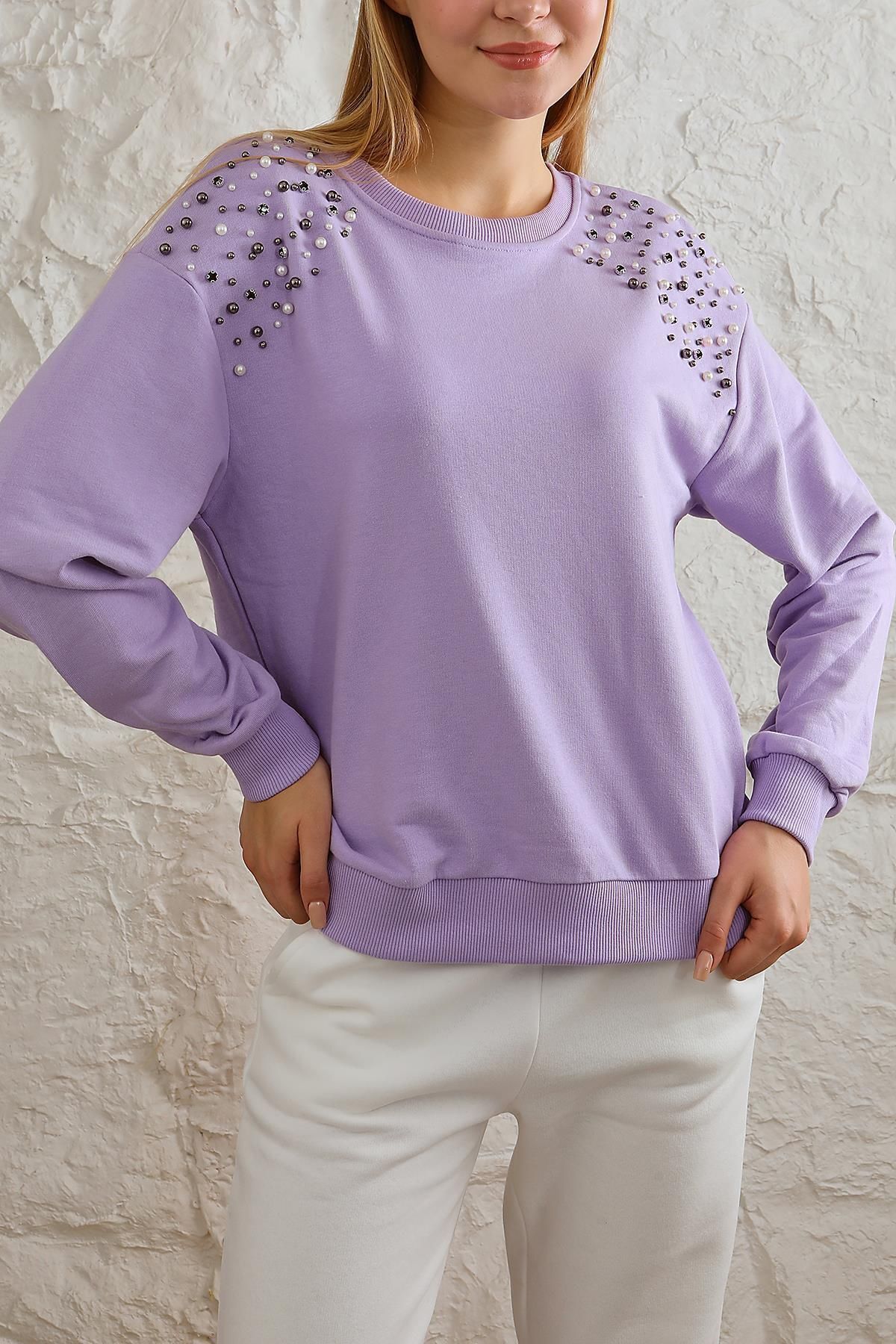 Kadın Rahat Kalıp Omuzları İnci Düğme Detaylı Sweatshirt