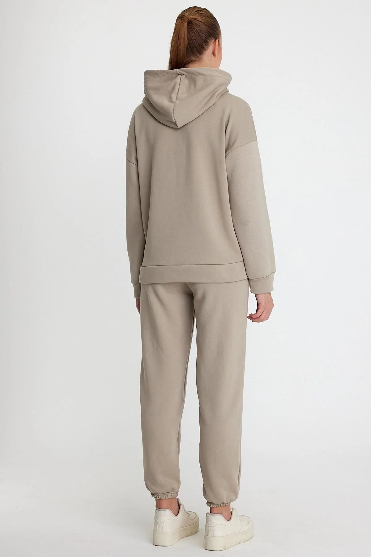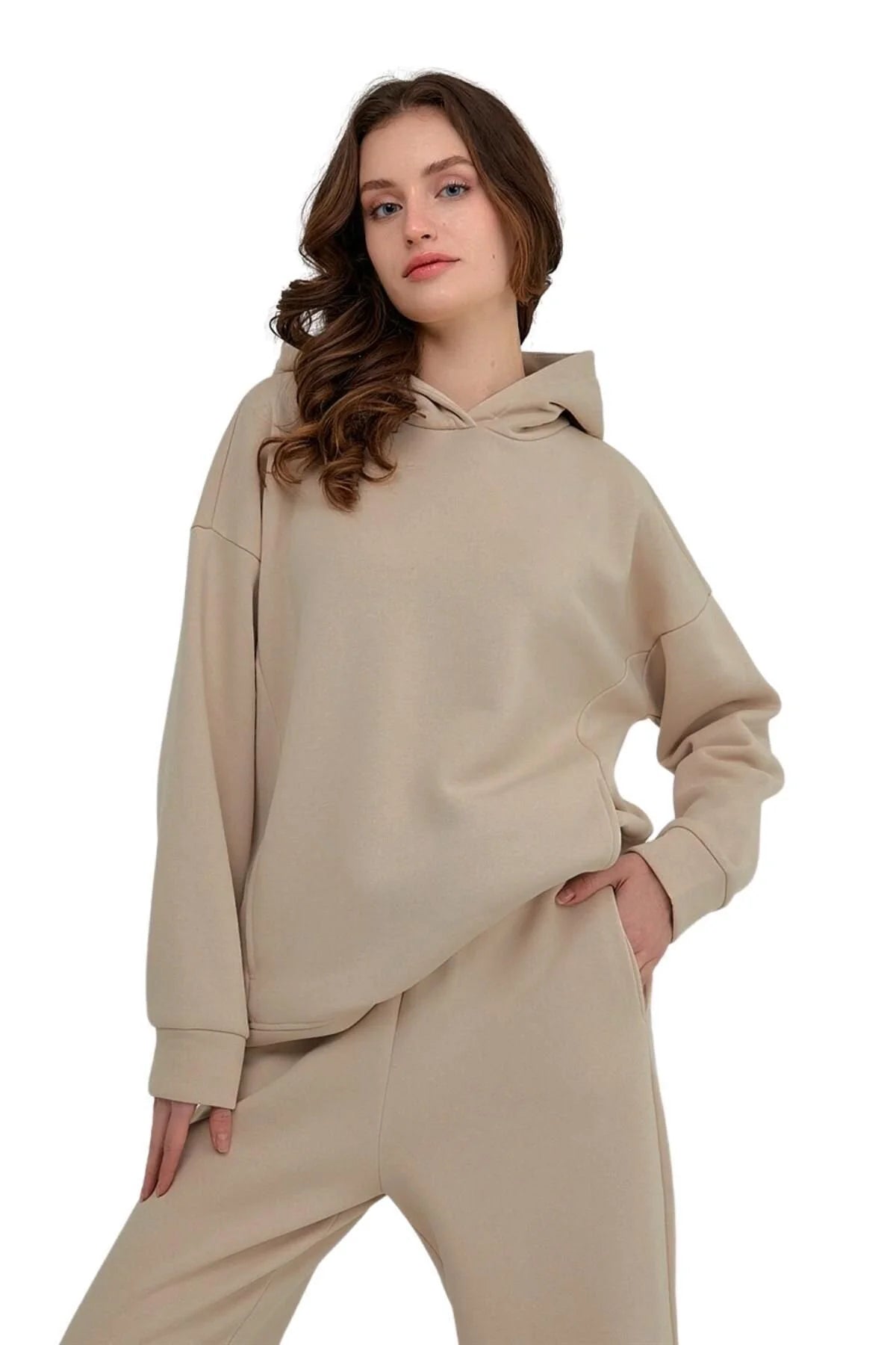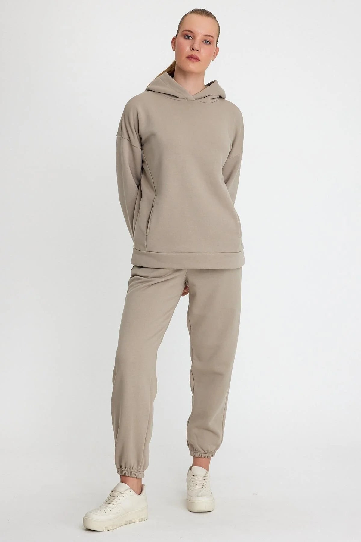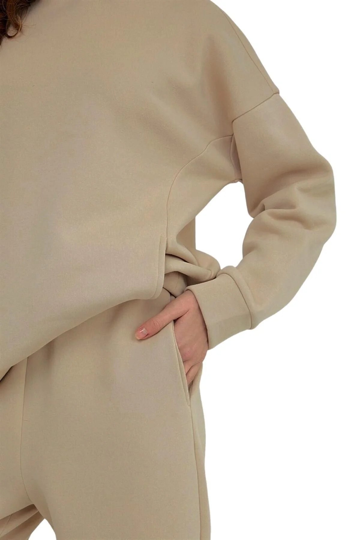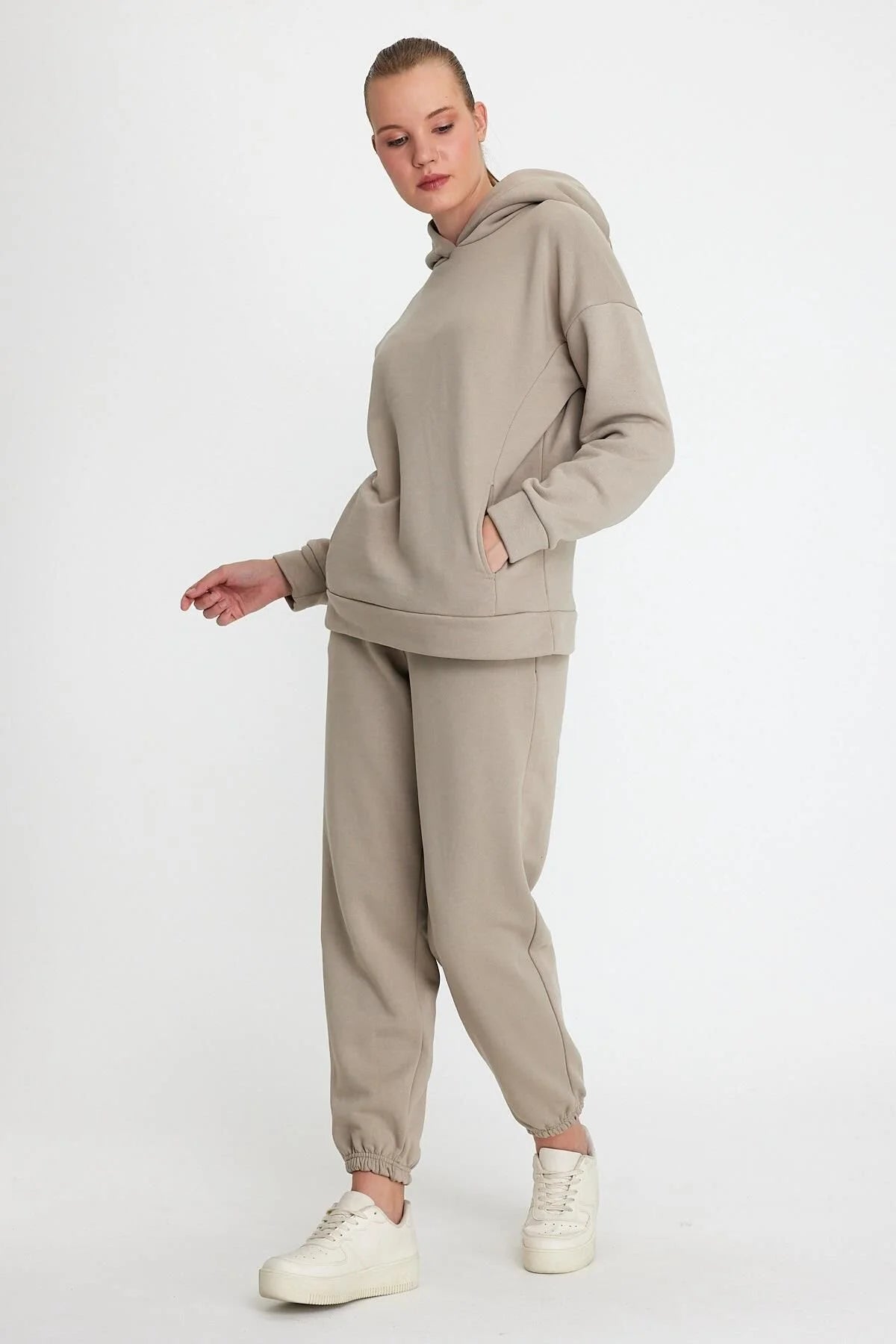 Kadın Beli Ve Paçası Lastikli Üç İplik Polarlı Oversize Eşofman Takımı