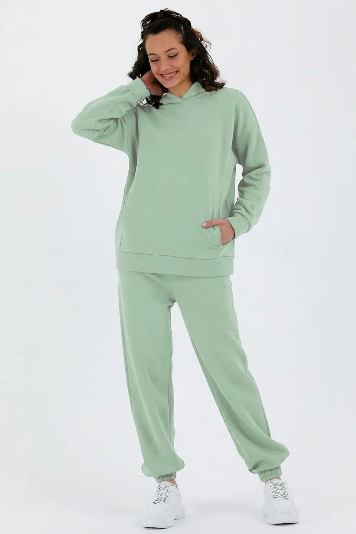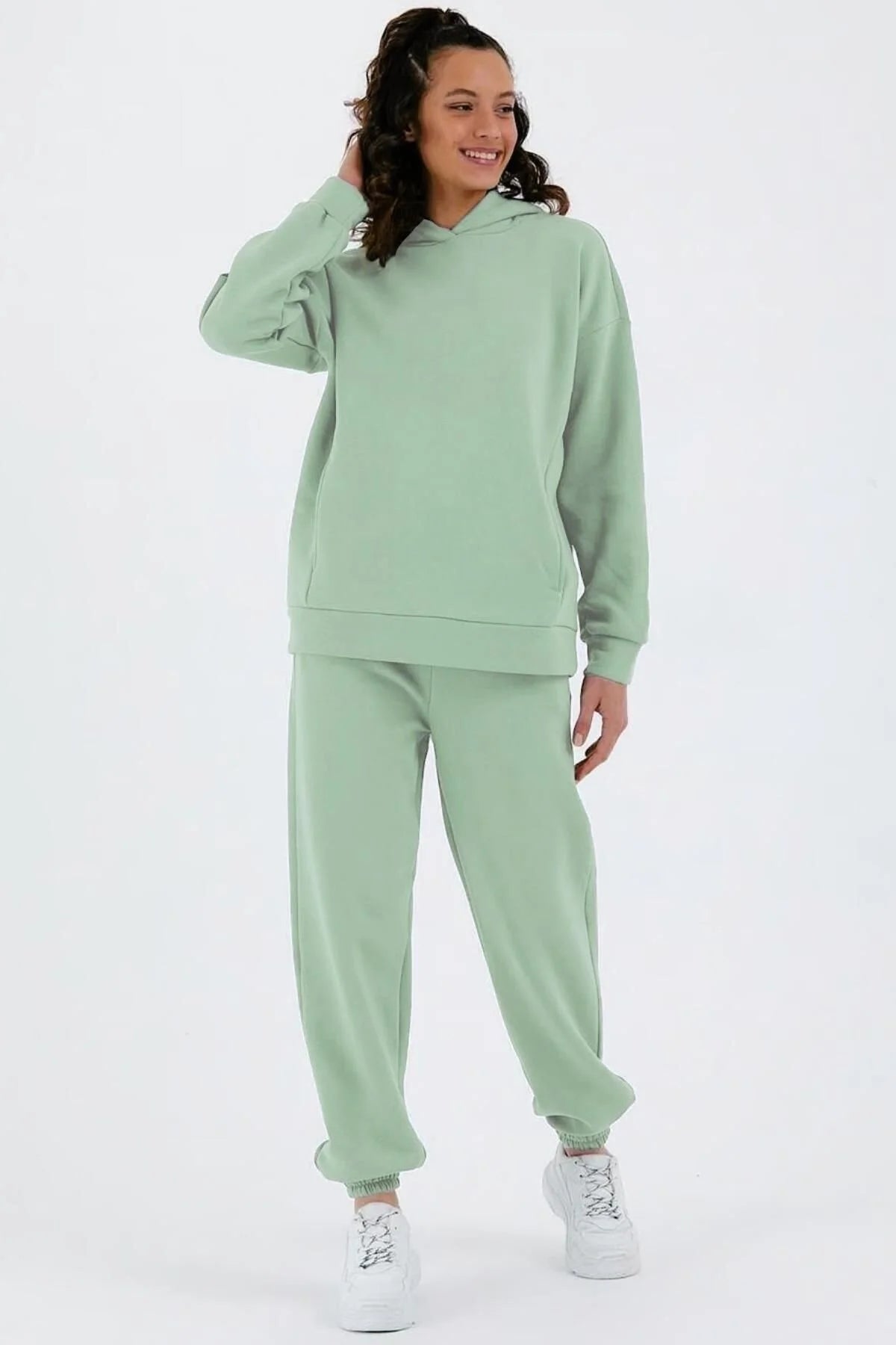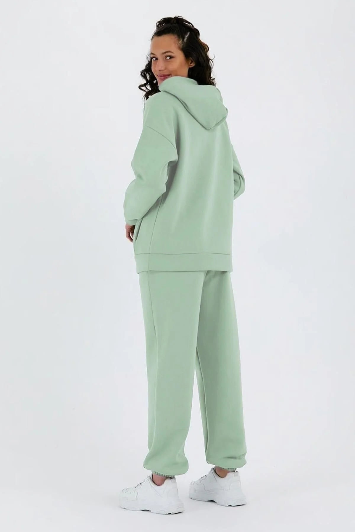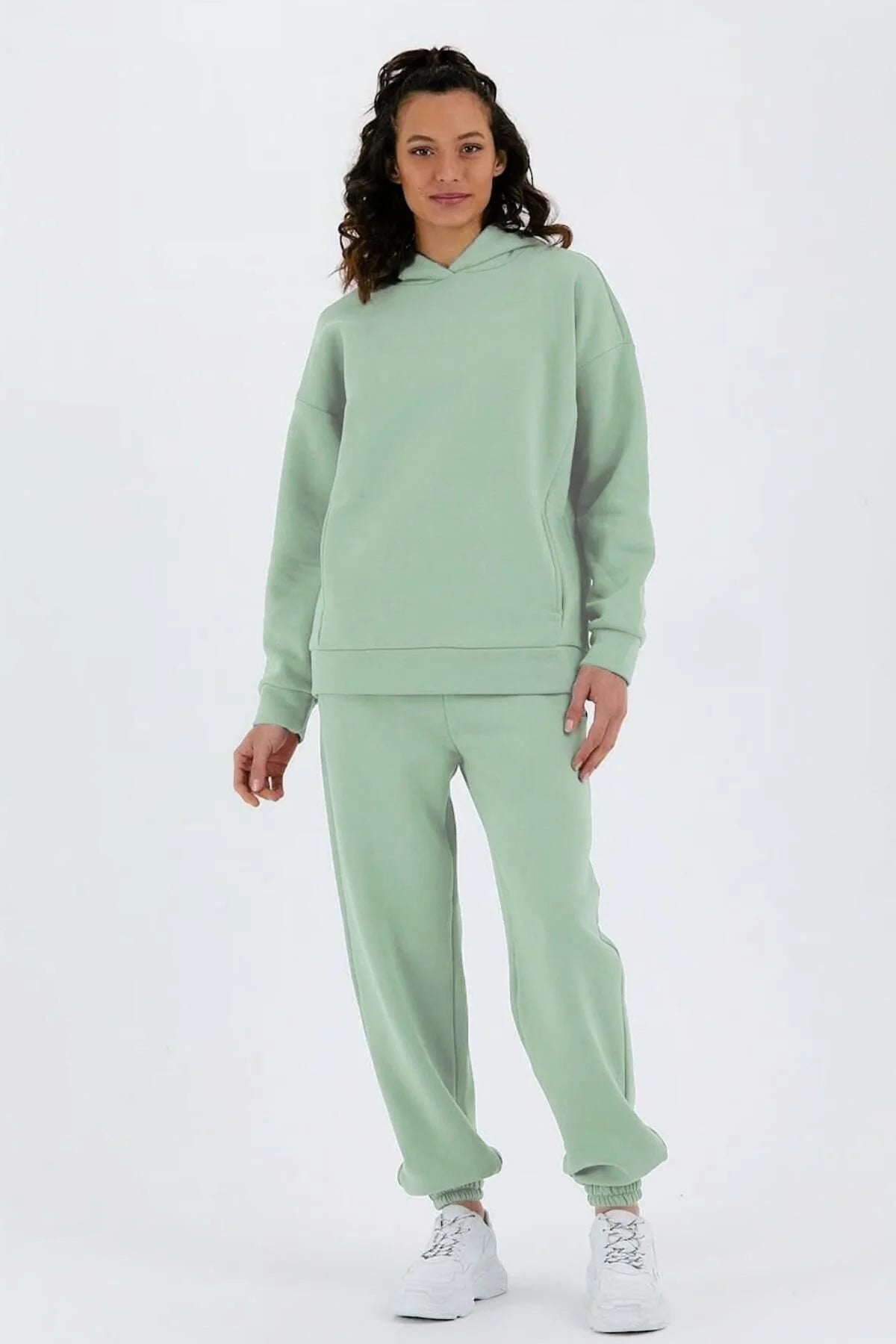 Kadın Beli Ve Paçası Lastikli Üç İplik Polarlı Oversize Eşofman Takımı