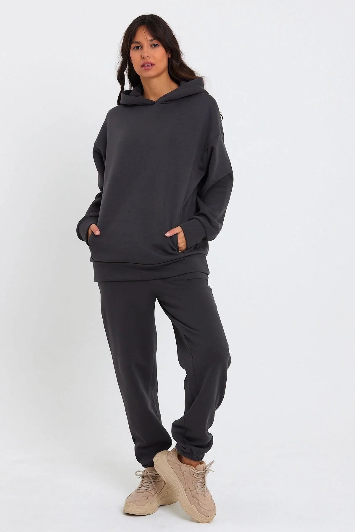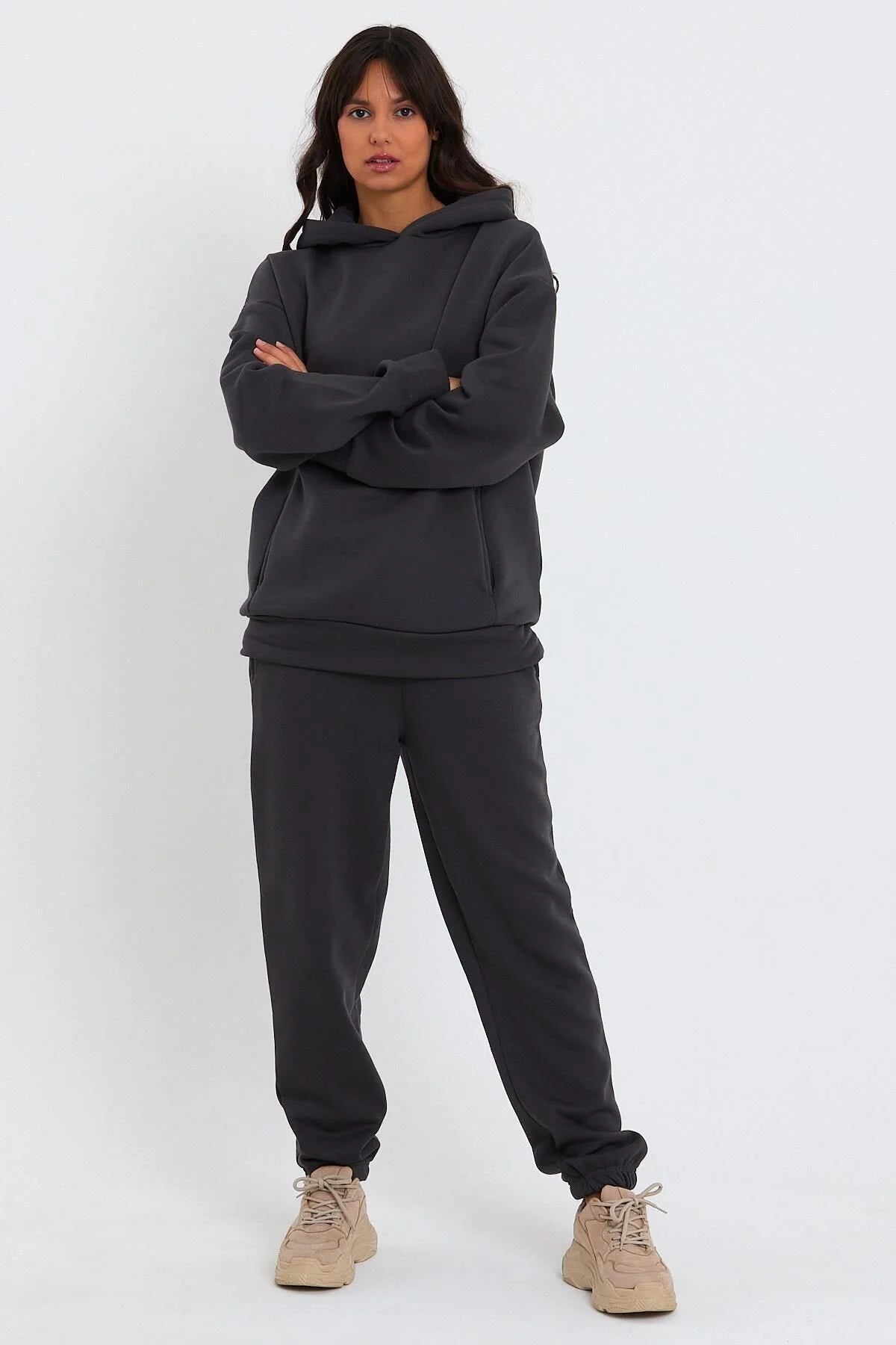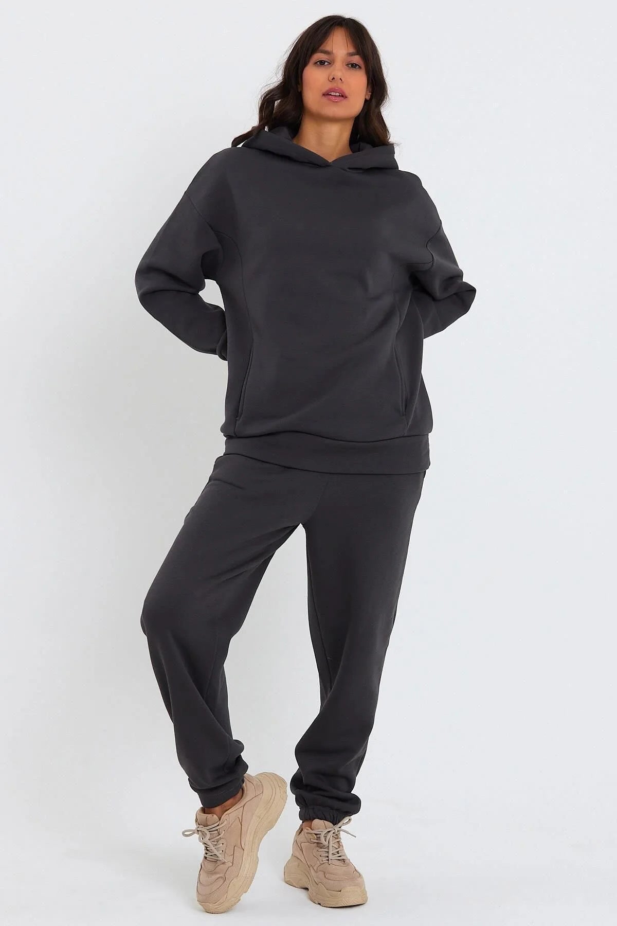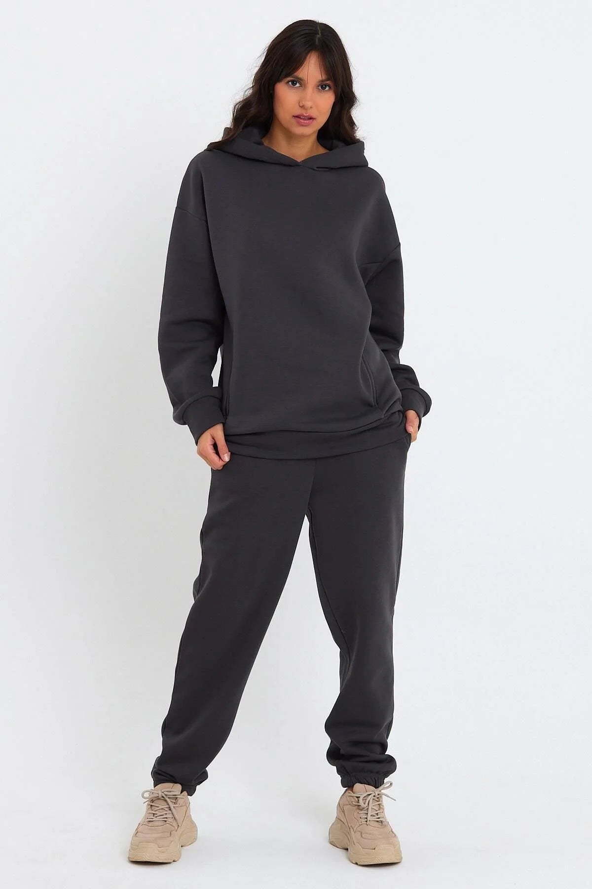Kadın Beli Ve Paçası Lastikli Üç İplik Polarlı Oversize Eşofman Takımı