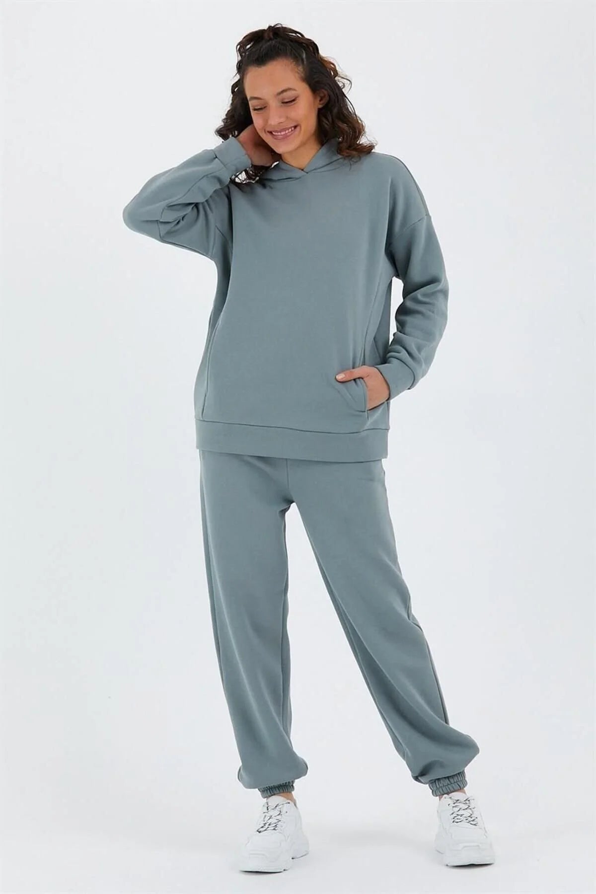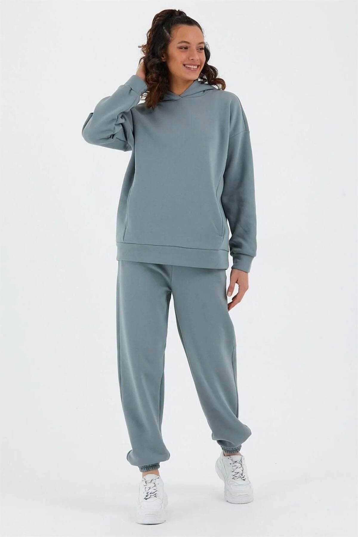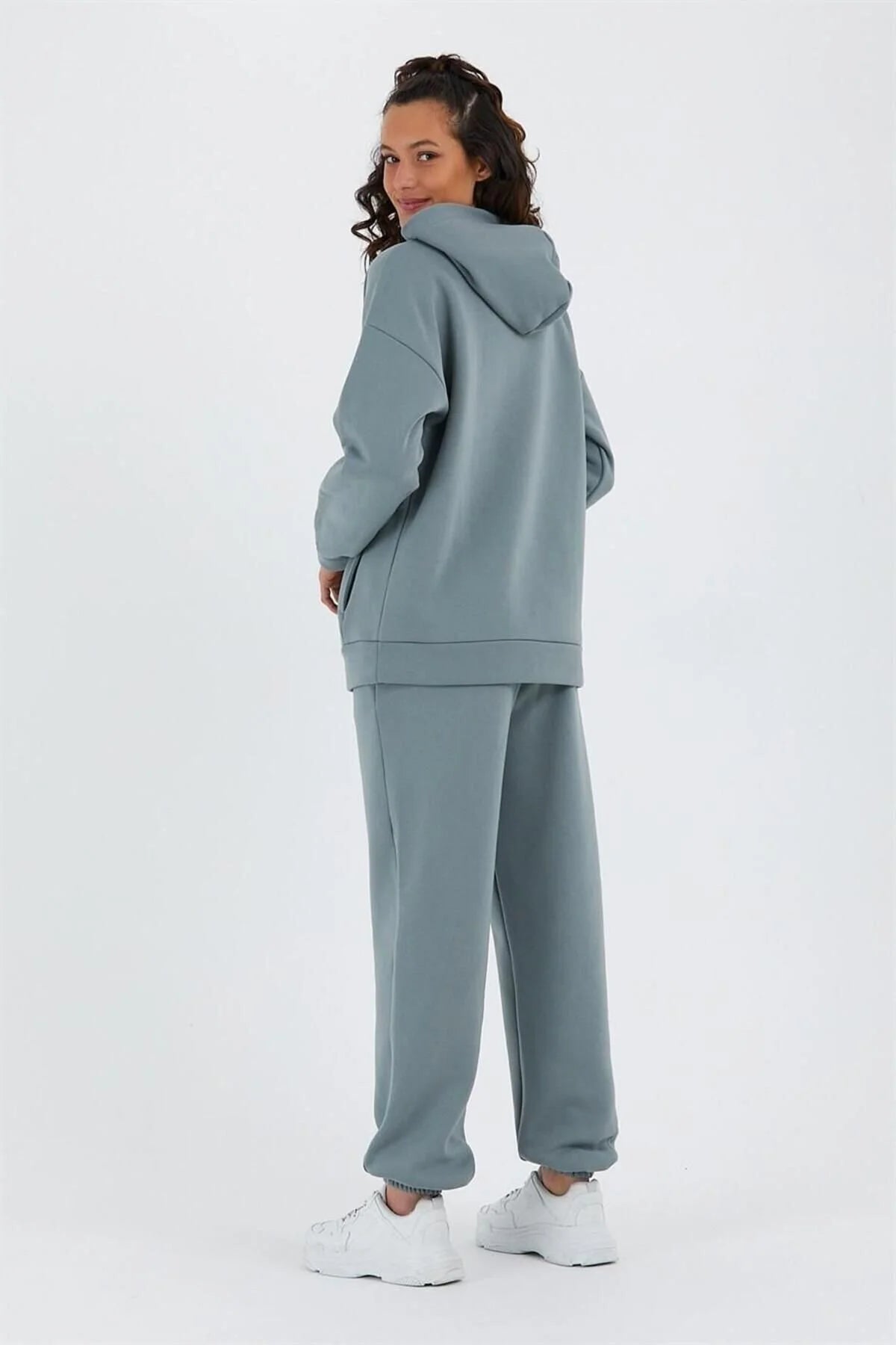 Kadın Beli Ve Paçası Lastikli Üç İplik Polarlı Oversize Eşofman Takımı