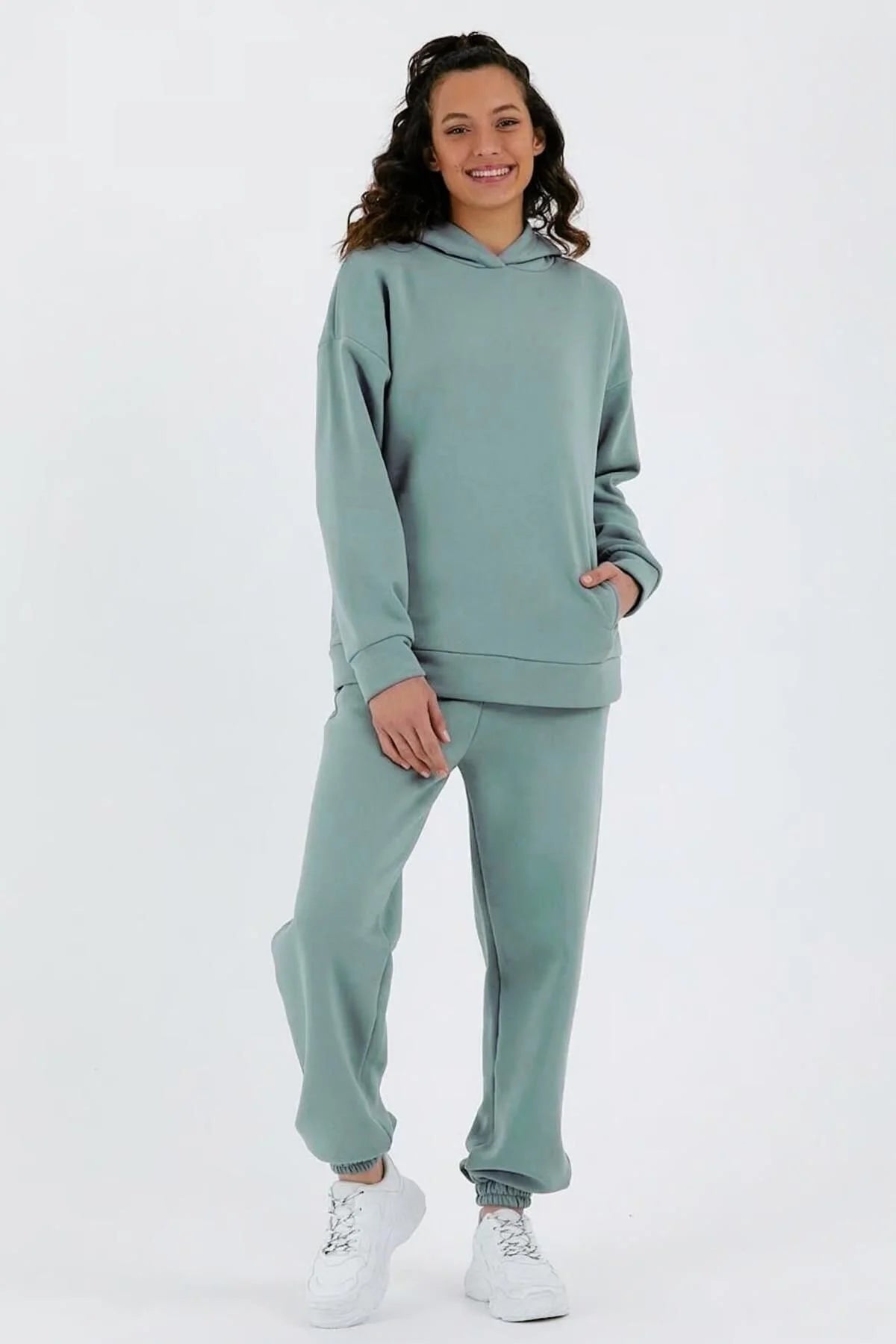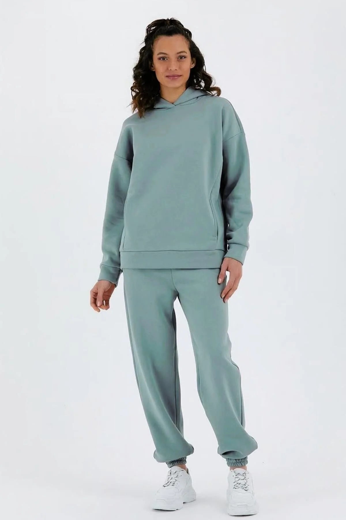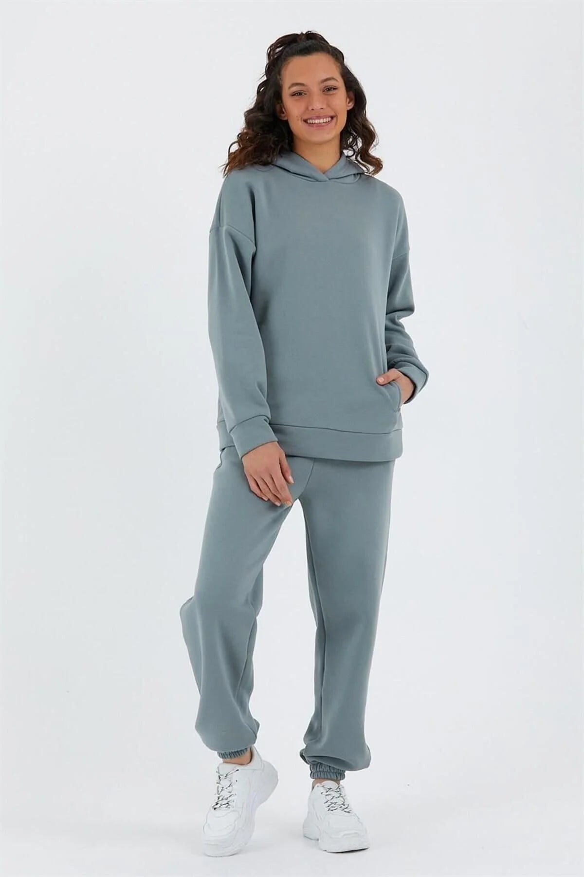 Kadın Beli Ve Paçası Lastikli Üç İplik Polarlı Oversize Eşofman Takımı