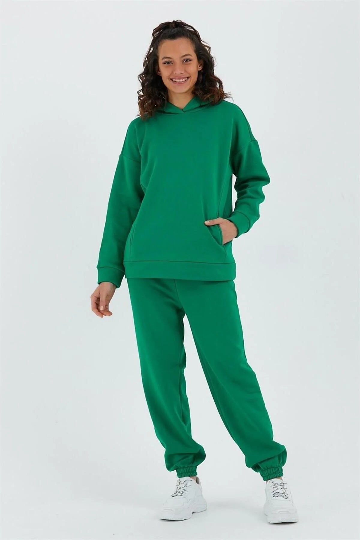 Kadın Beli Ve Paçası Lastikli Üç İplik Polarlı Oversize Eşofman Takımı