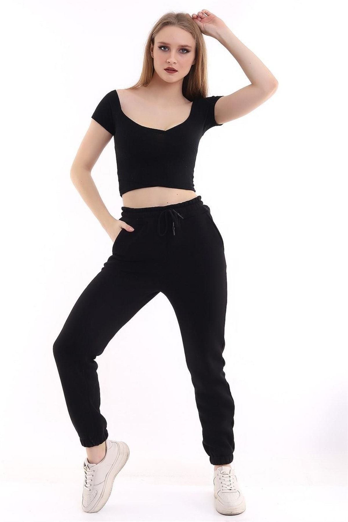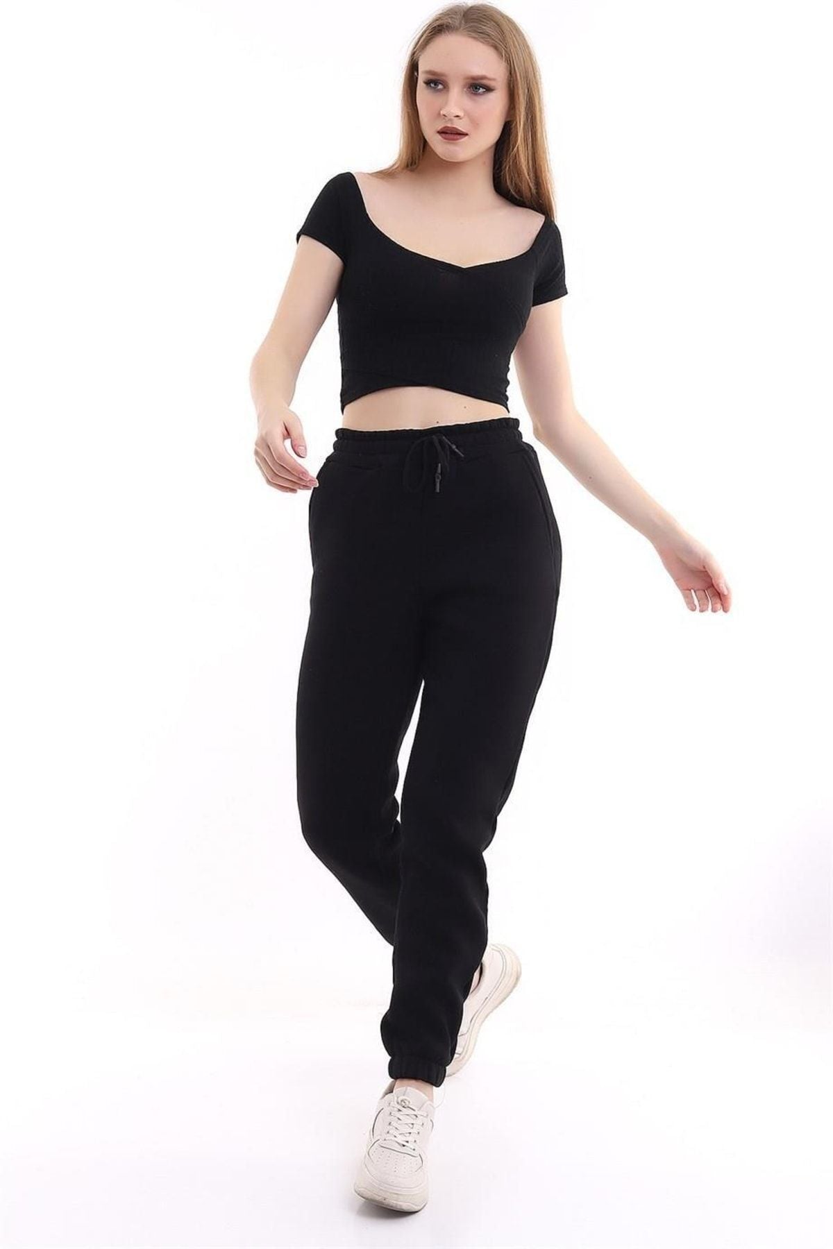 Kadın 3 İplik Şardonlu Cepli Ve Kordonlu Eşofman Altı