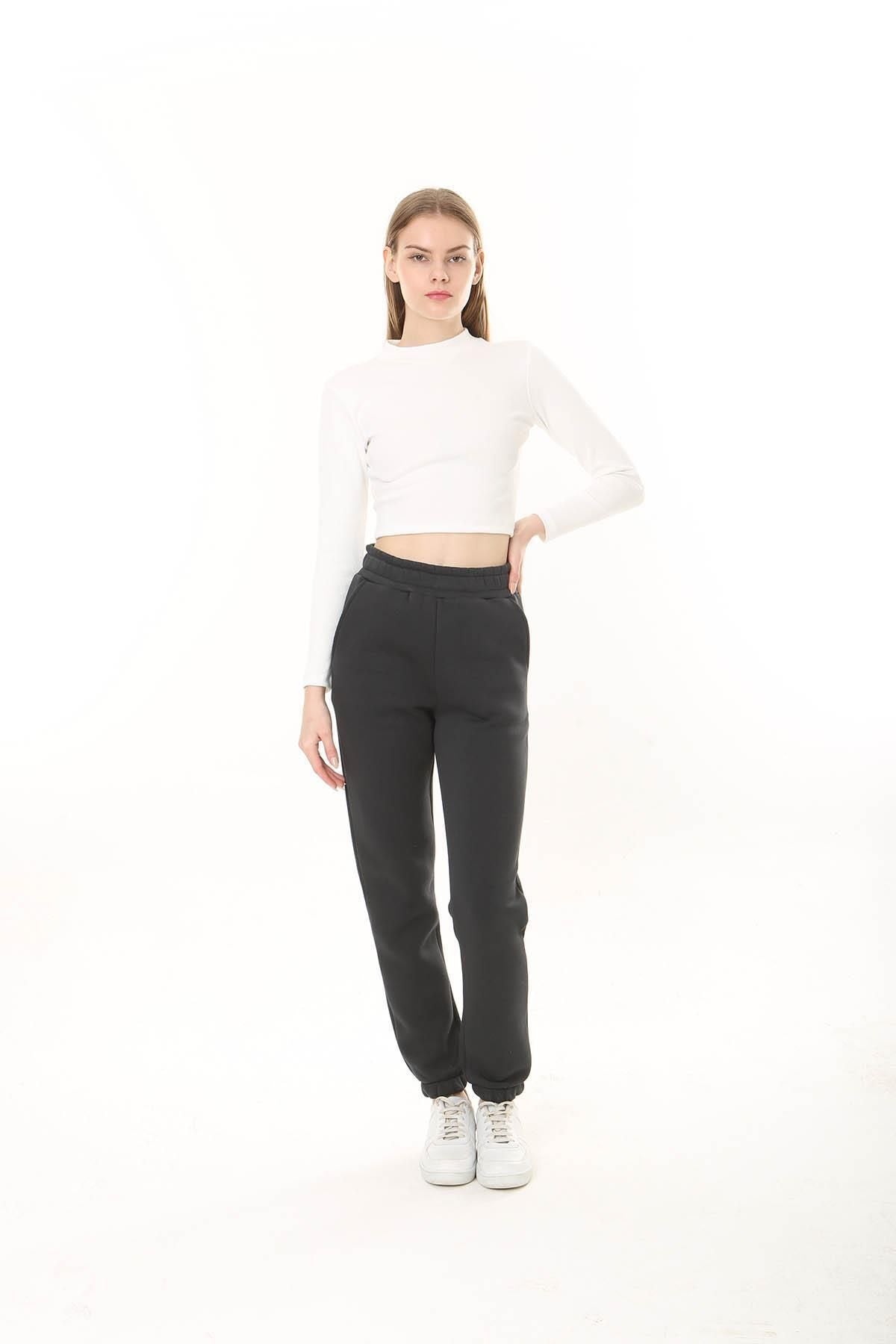 Kadın Beli Ve Paçası Lastikli Üç İplik Örme Eşofman Altı Jogger