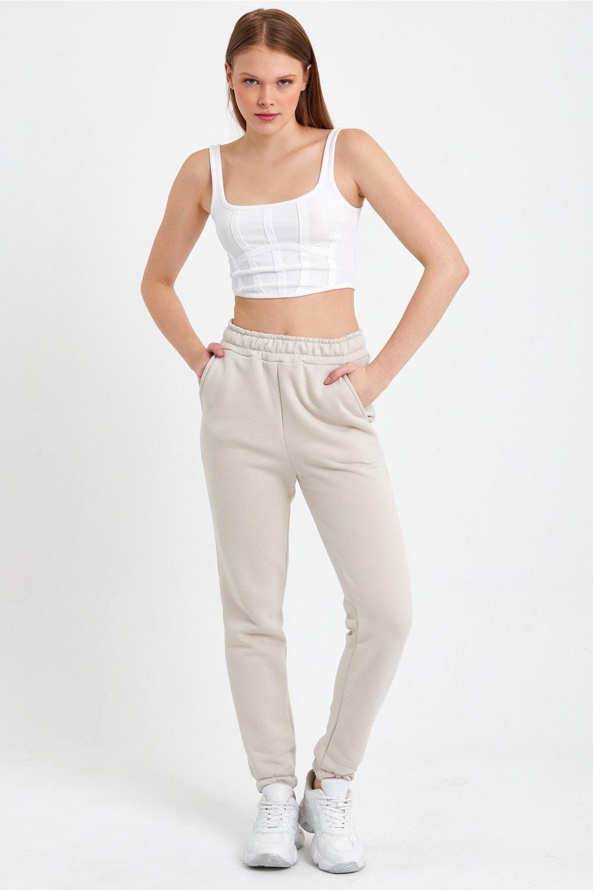 Kadın Beli Ve Paçası Lastikli Üç İplik Örme Eşofman Altı Jogger