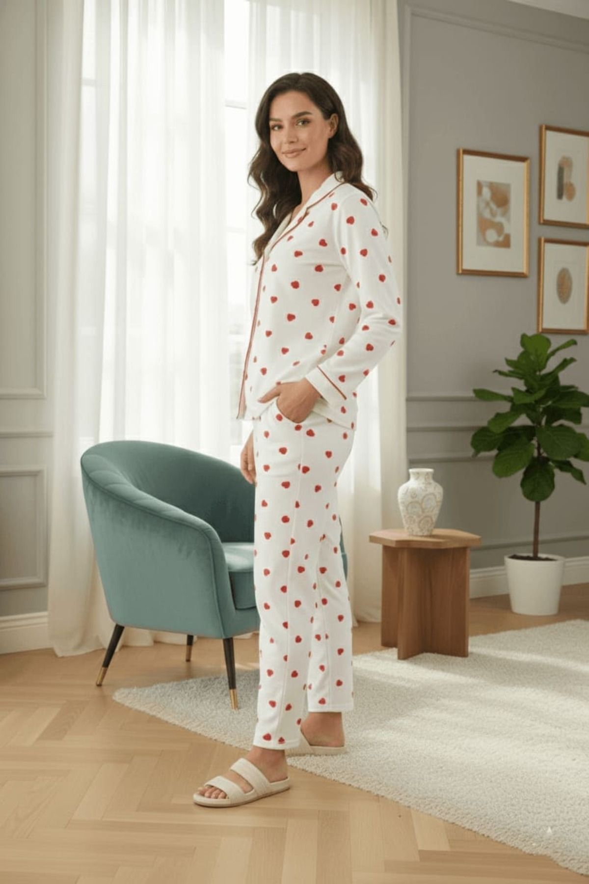 Kadın Metraj Baskılı %100 Pamuk Örme Pijama Takımı - Rahat ve Şık Ev Giyim