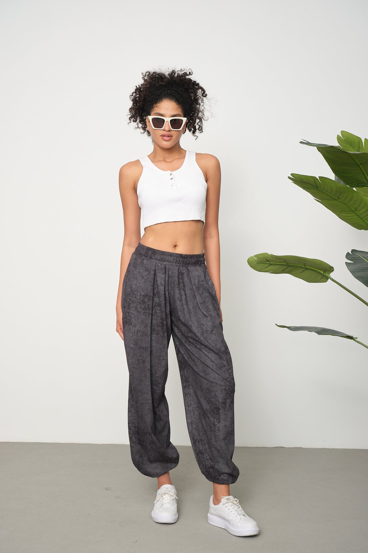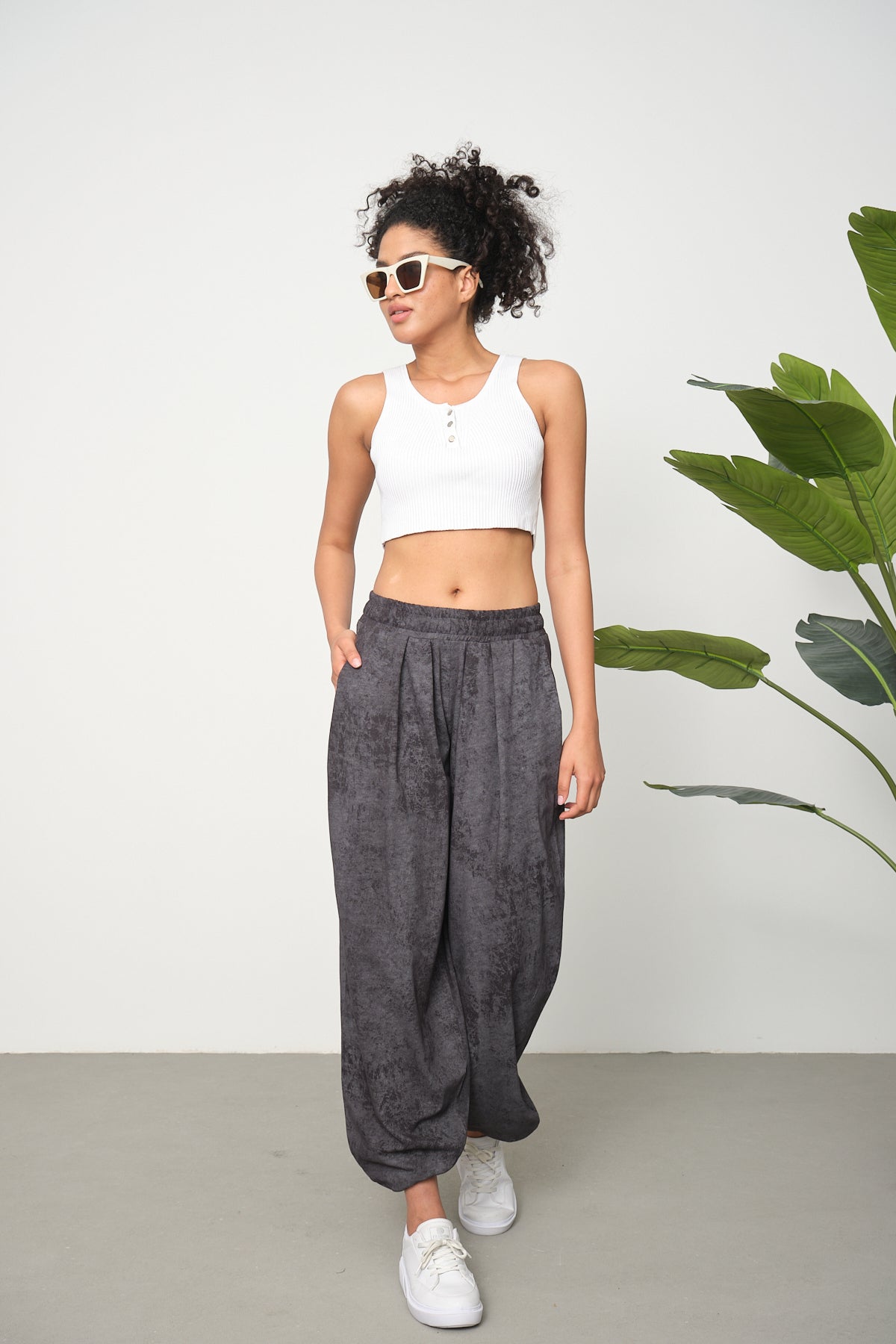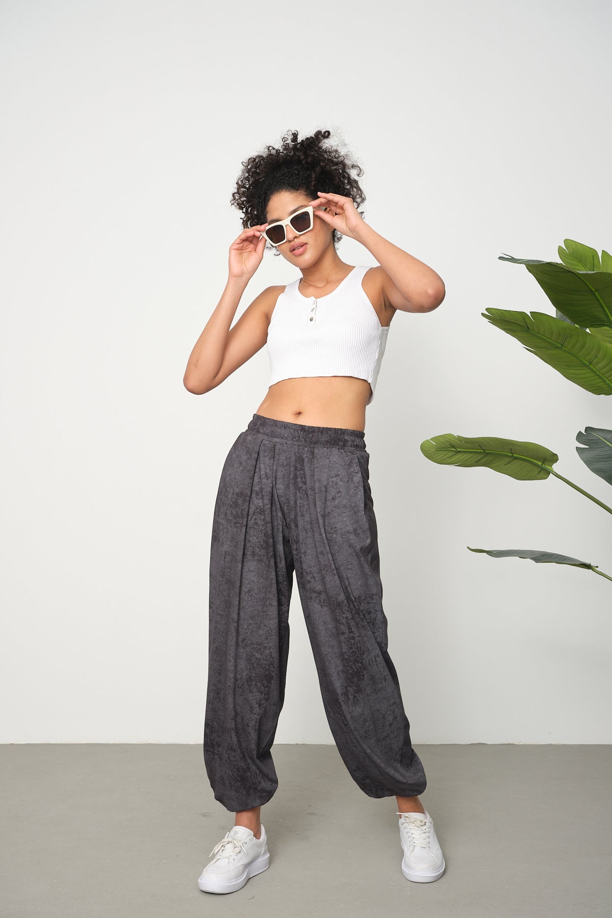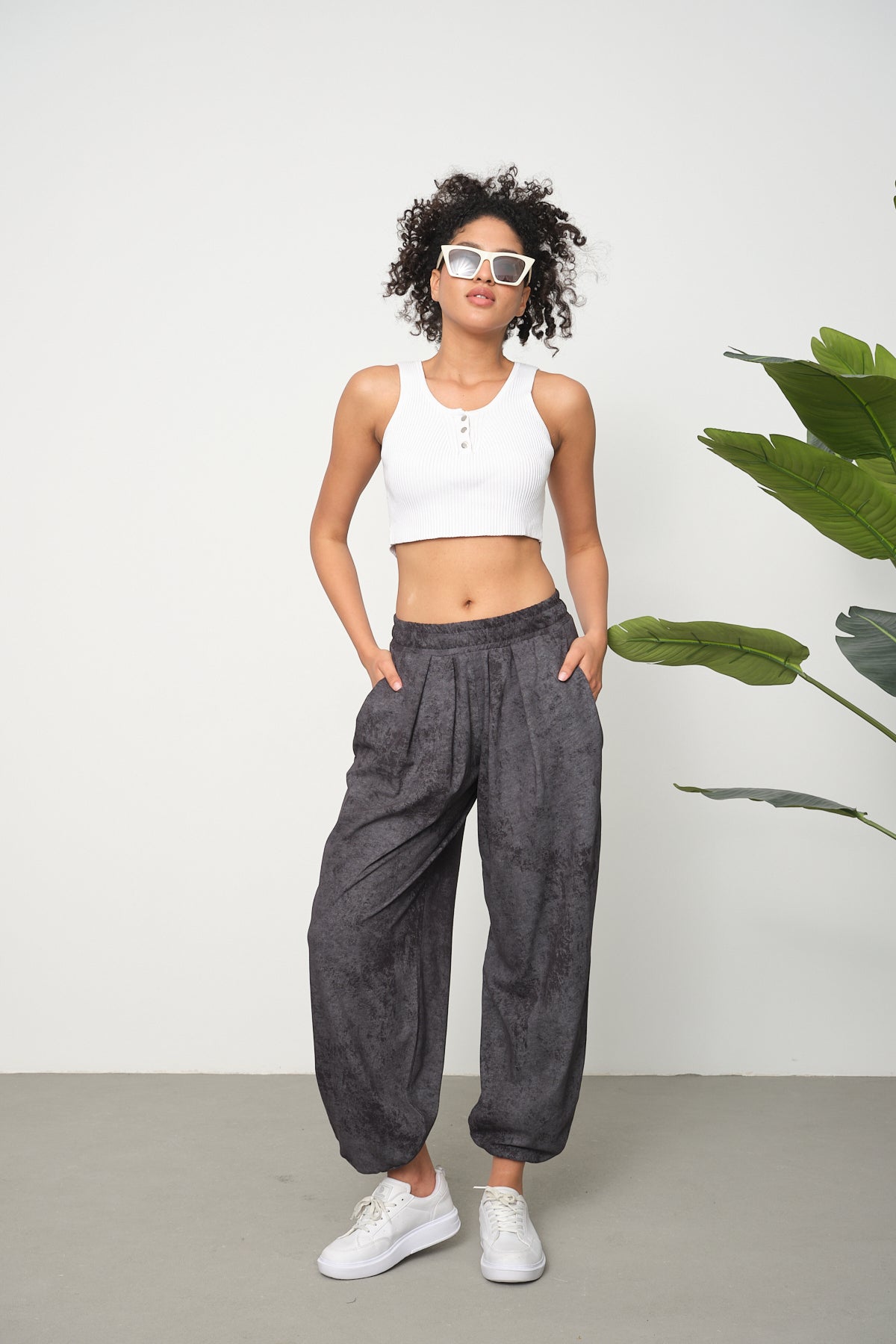 Kadın Cupra Kumaş Cepli Dökümlü Şalvar Pantolon