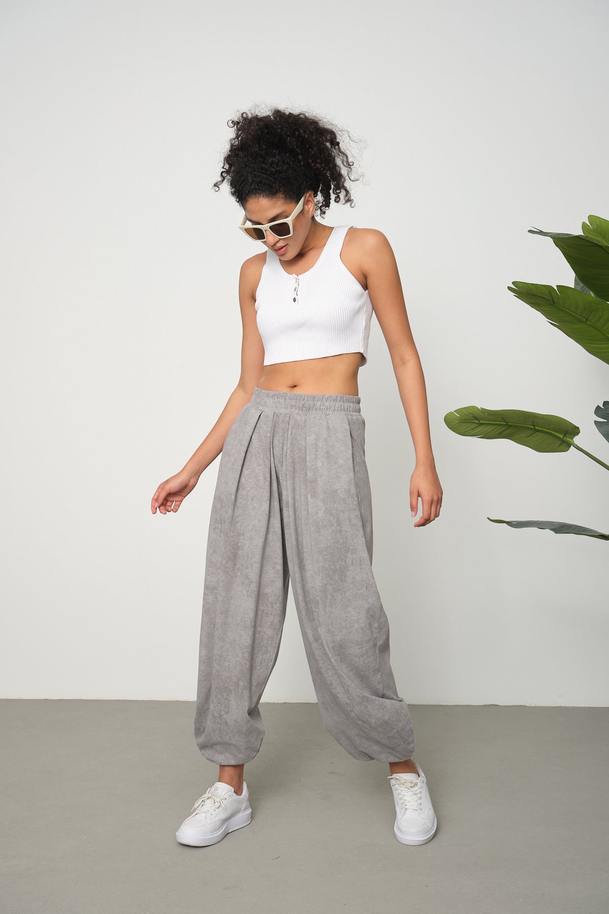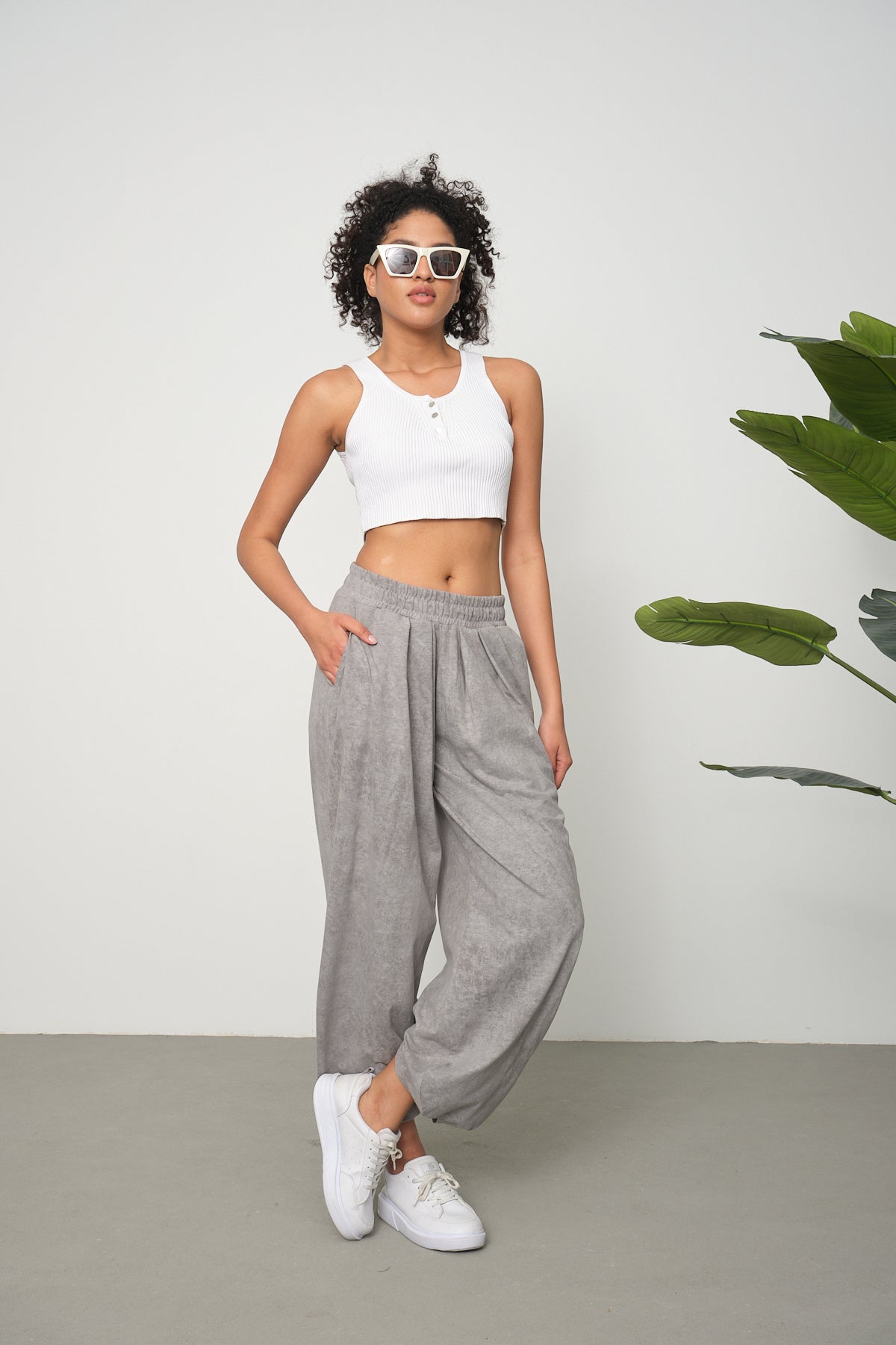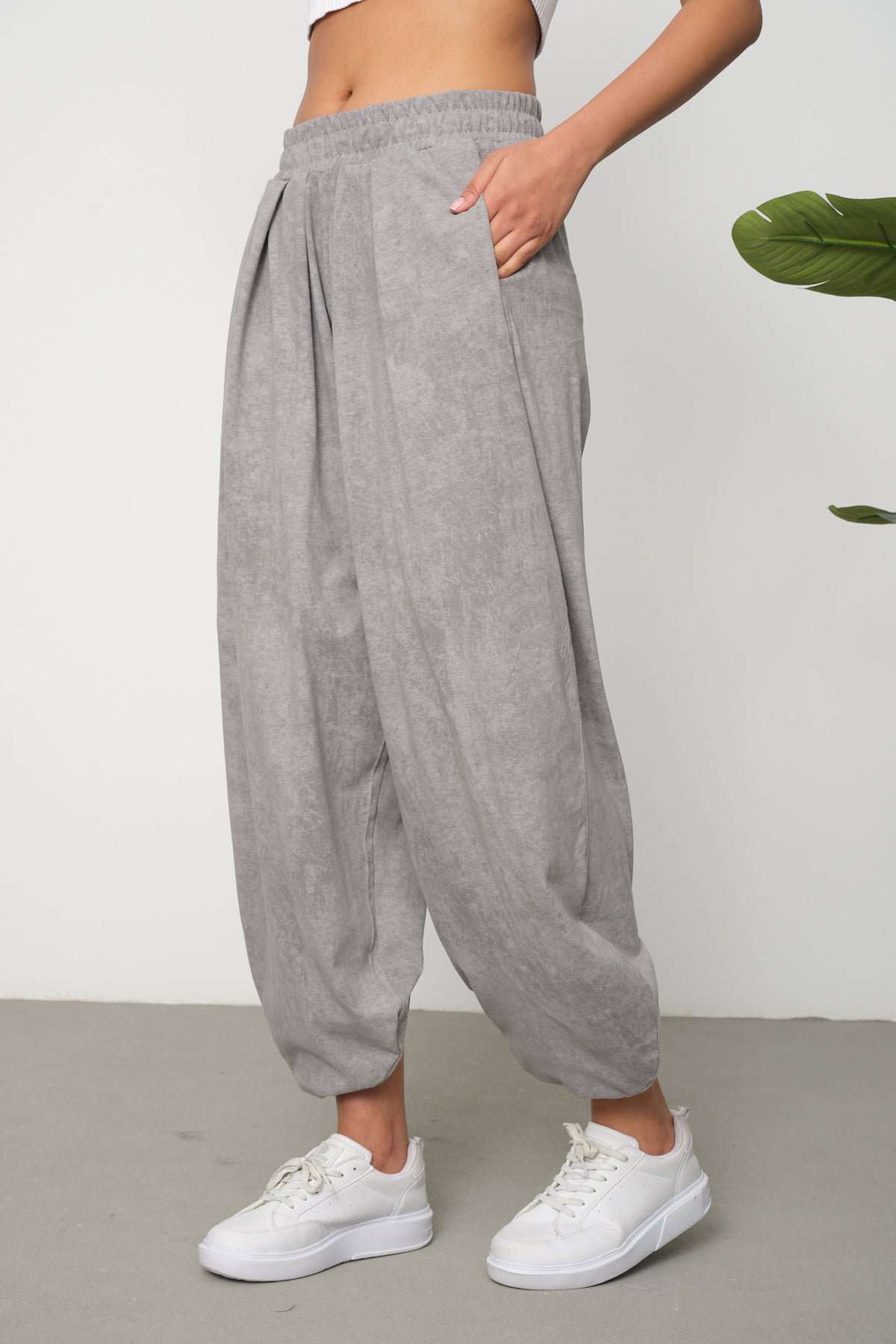 Kadın Cupra Kumaş Cepli Dökümlü Şalvar Pantolon