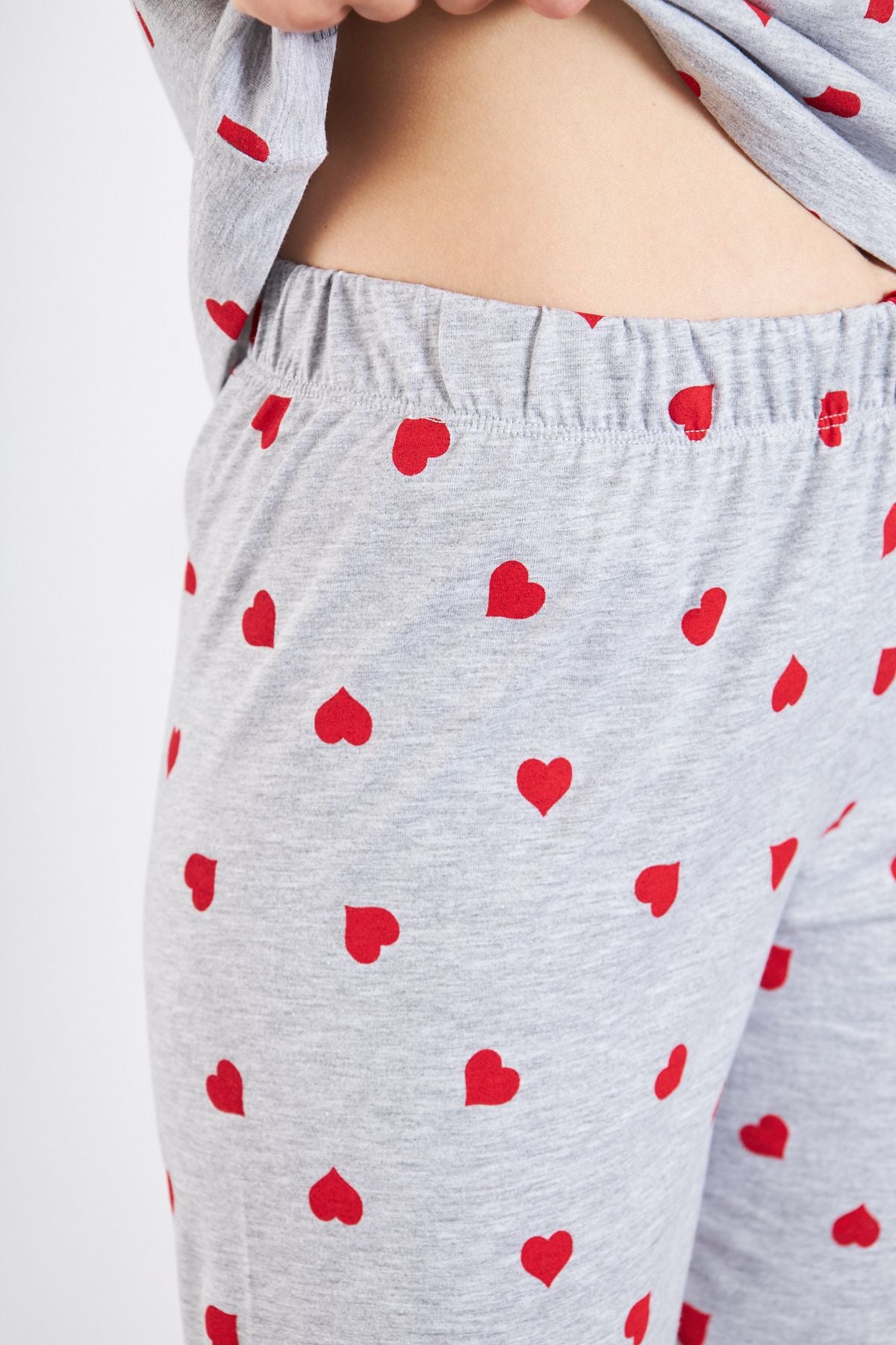 Kadın 2li Takım T-shirt/pijama Metraj Baskılı Pamuk Örme Kalpli Pijama Takımı