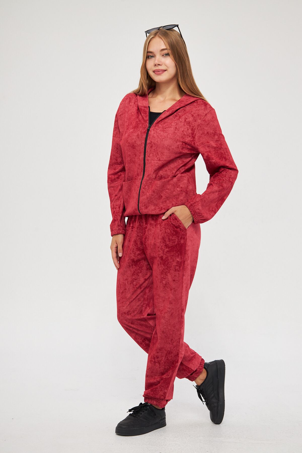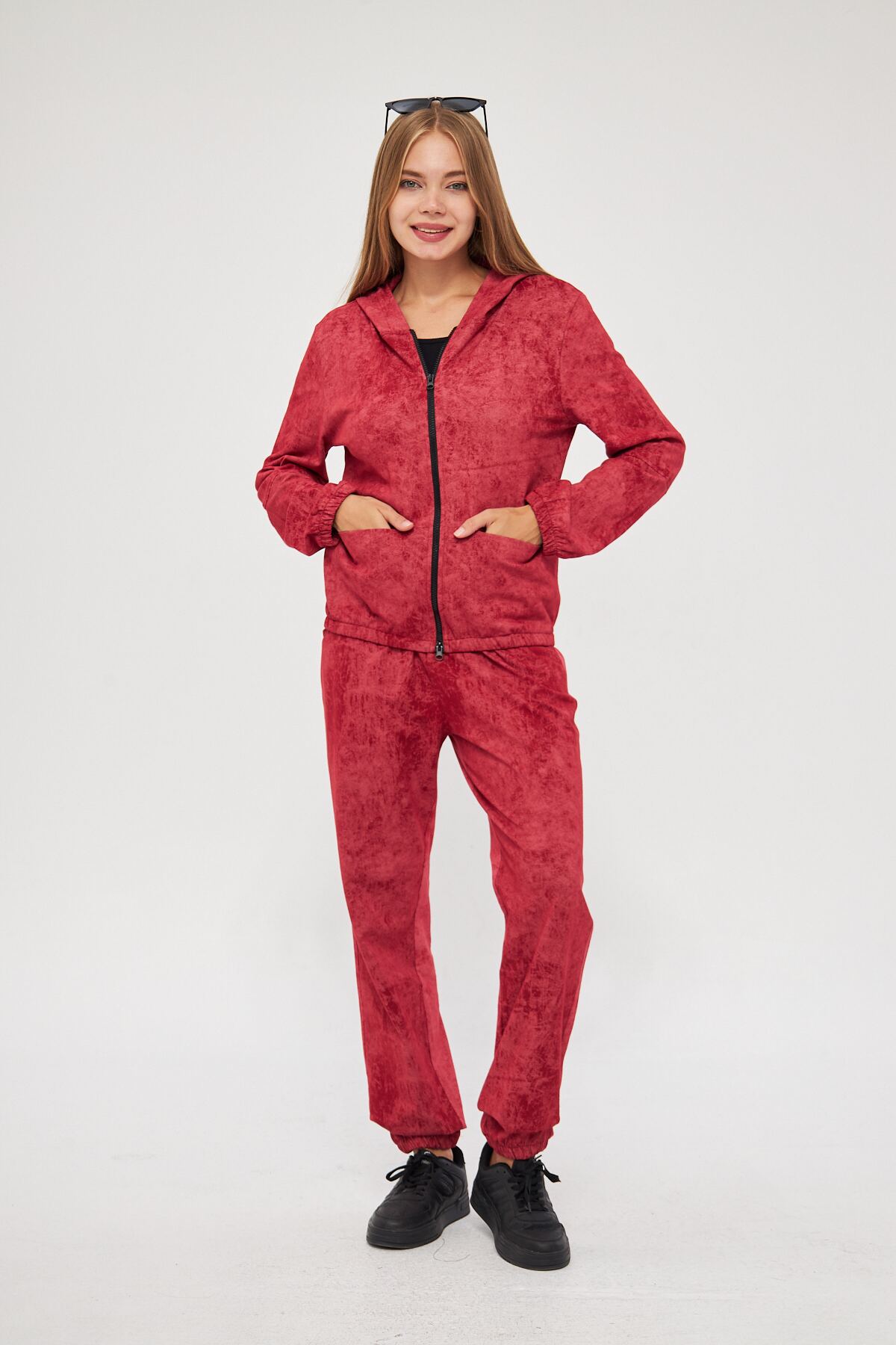 Kadın Asit Yıkama Efektli Batik Desen Önü Fermuarlı Etek Kol Lastikli Kapüşonlu Eşofman Takımı