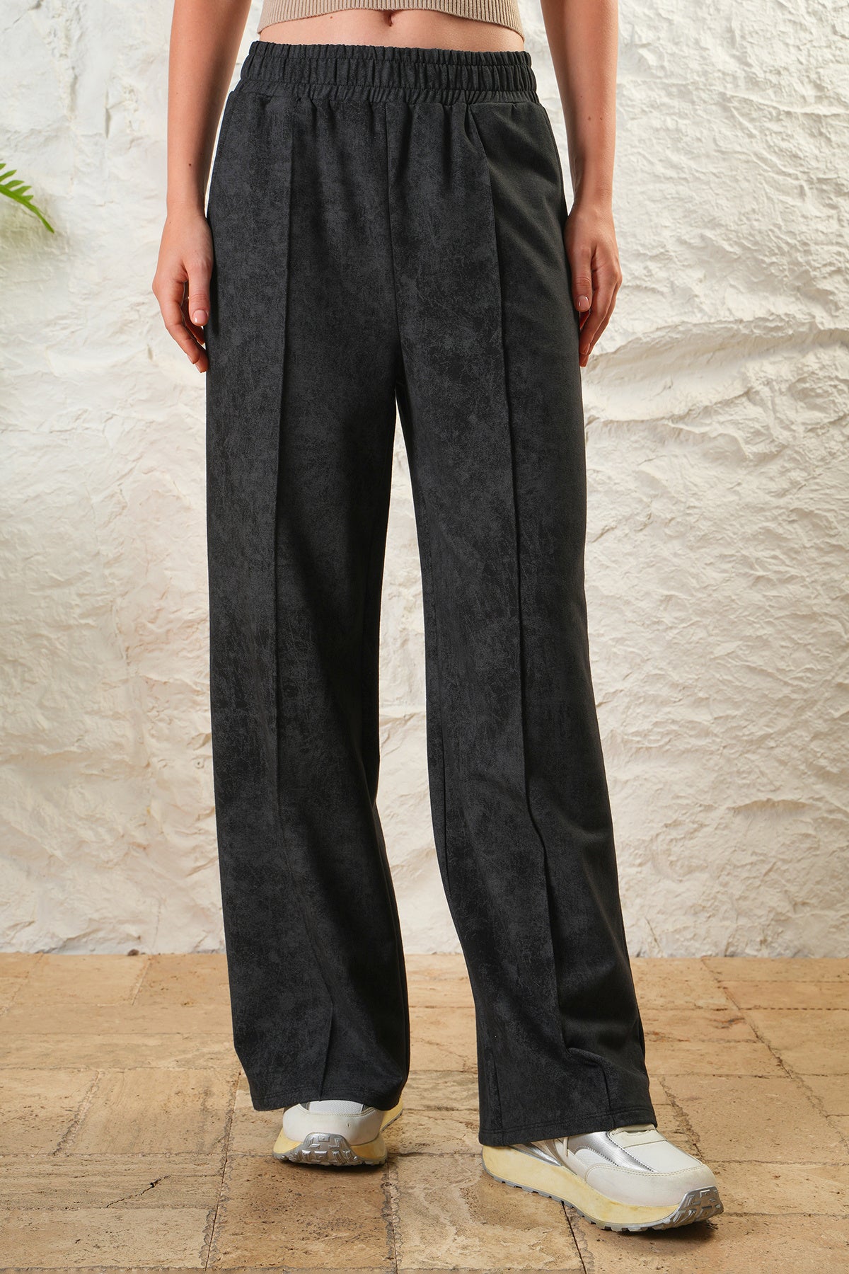Kadın Önü Nevrürlü Ceplı Bol Paça Rahat Pantolon