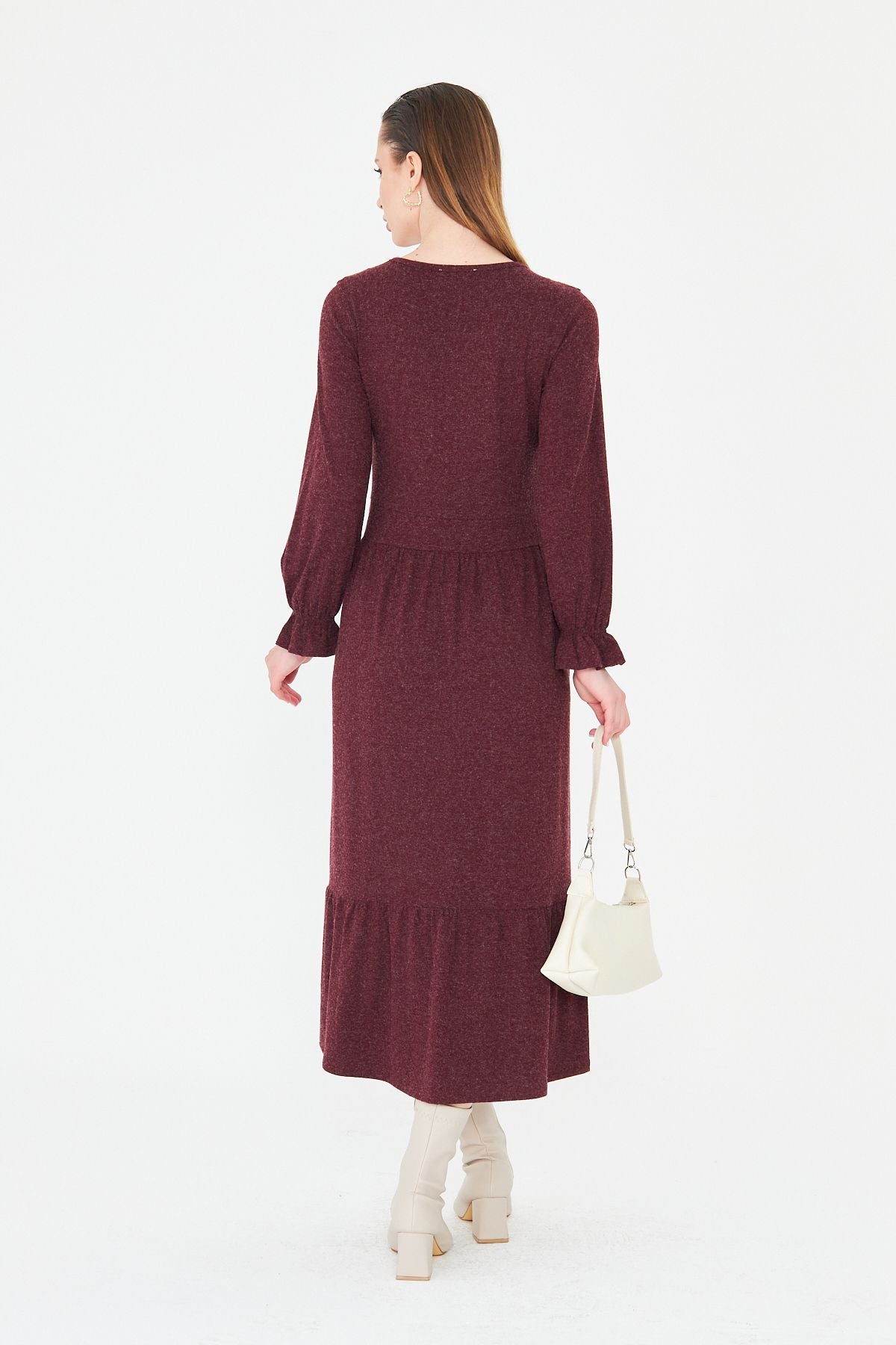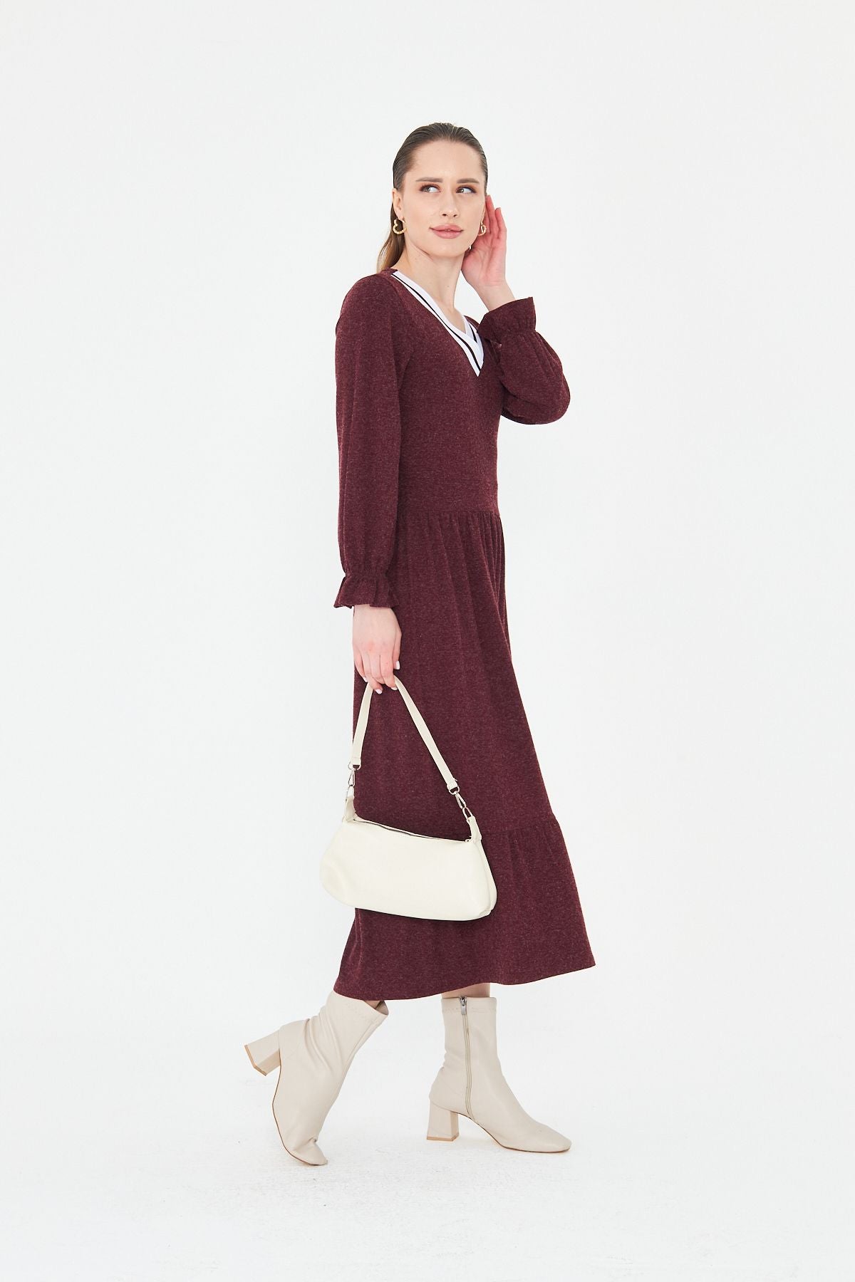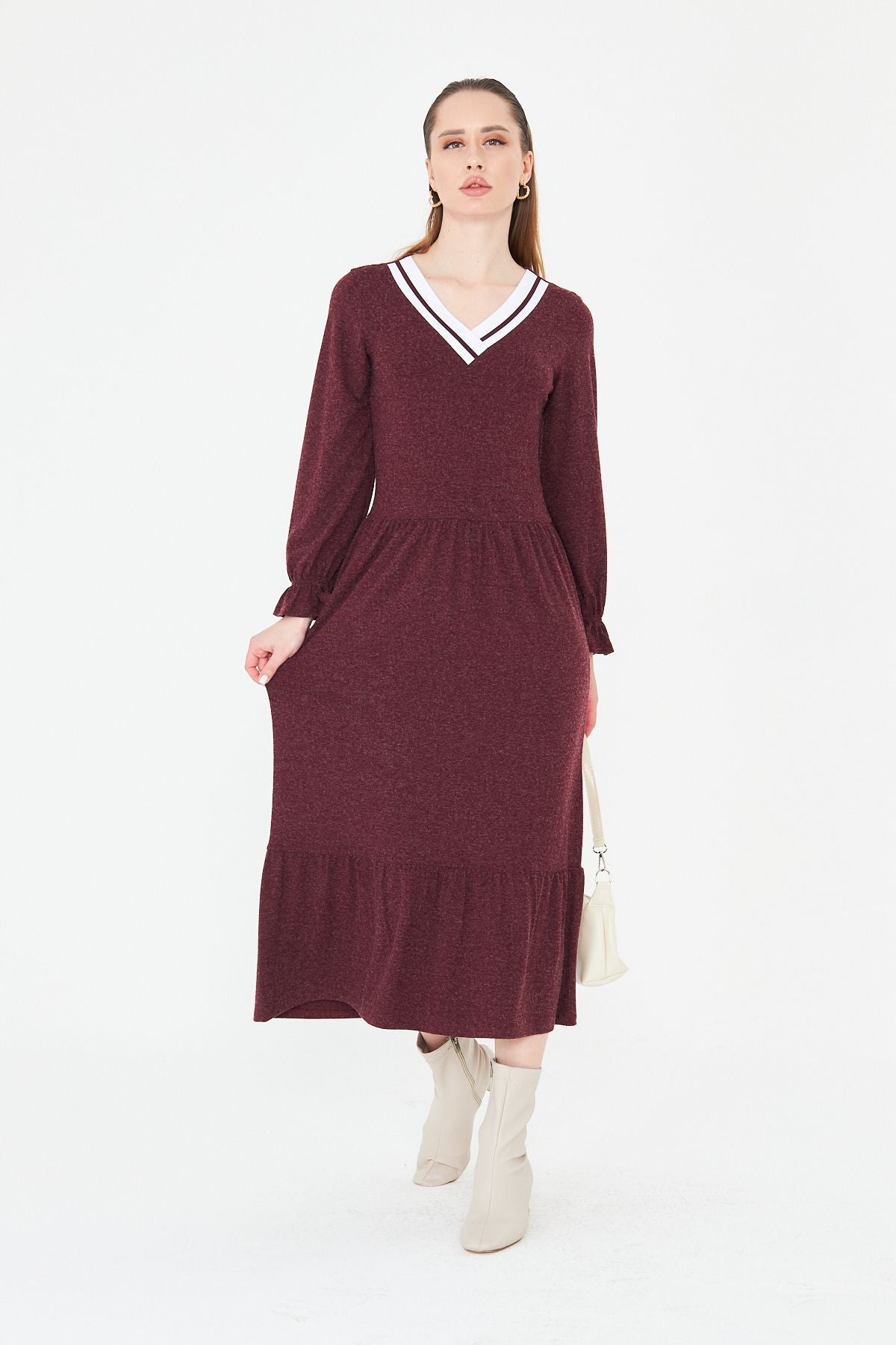 Kadın Uzun Kol Triko V Yakalı Yün Viskon Elbise