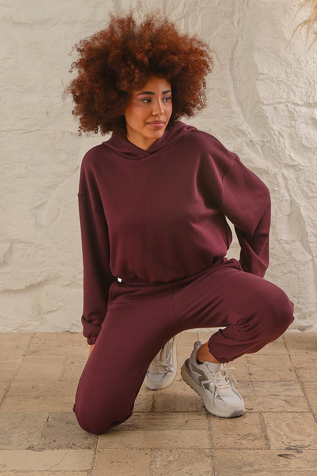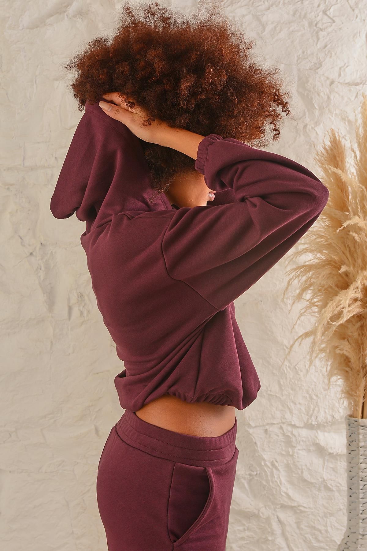 Kadın 3 İplik Şardonsuz Cepli Ve Kapüşonlu Eşofman Takımı