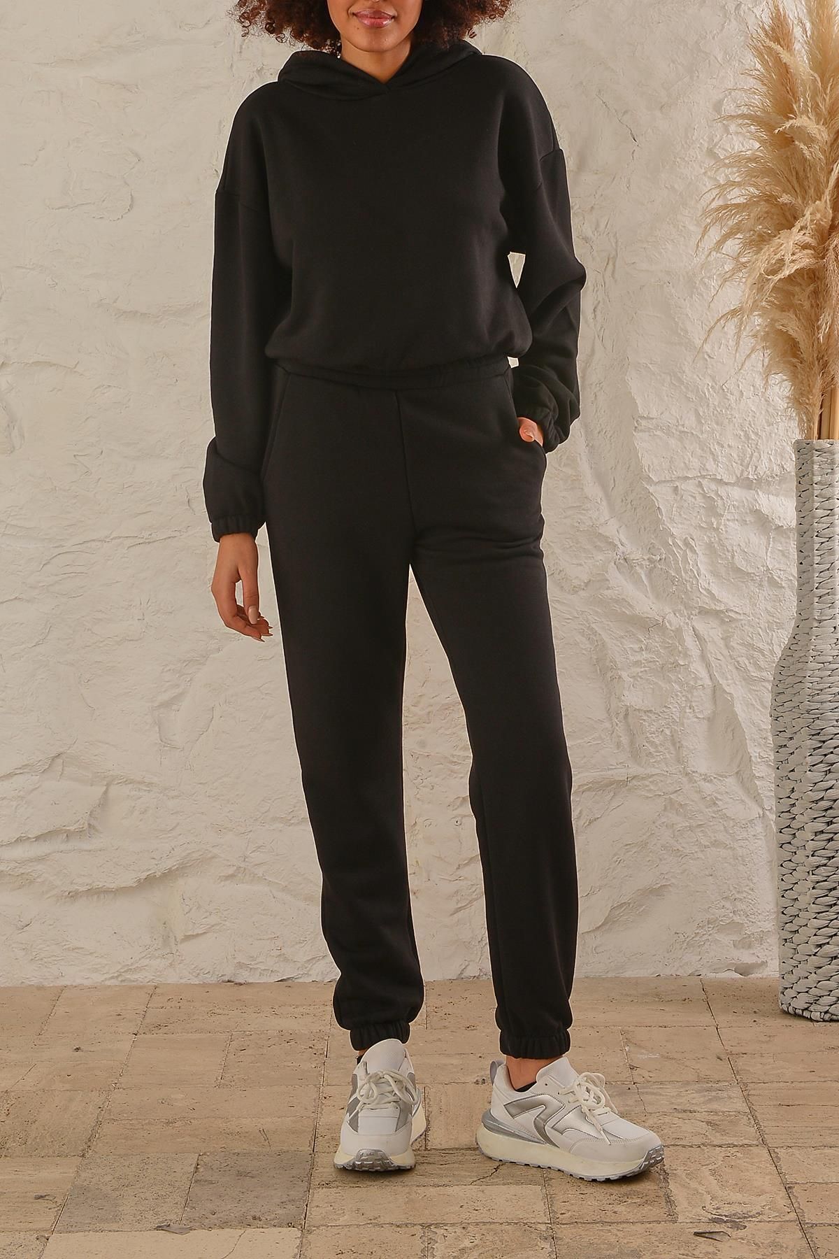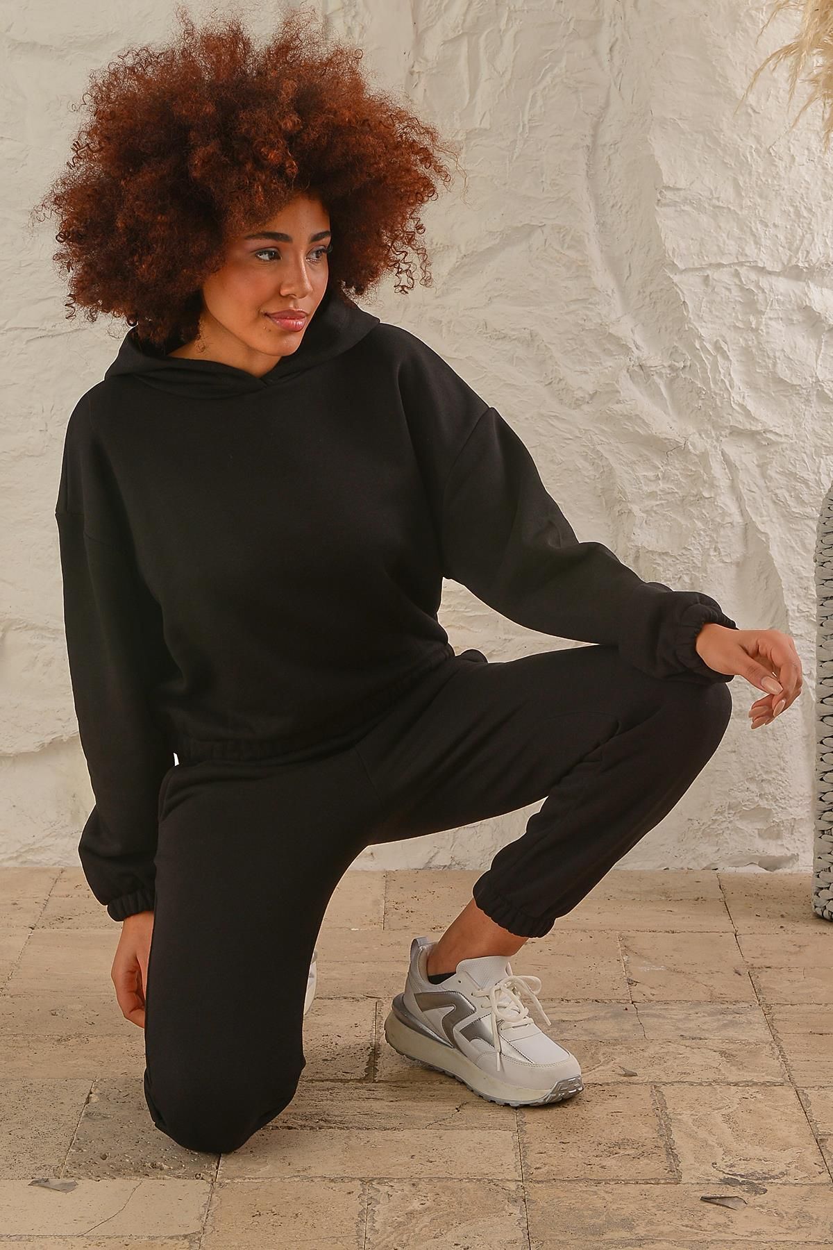 Kadın 3 İplik Şardonsuz Cepli Ve Kapüşonlu Eşofman Takımı